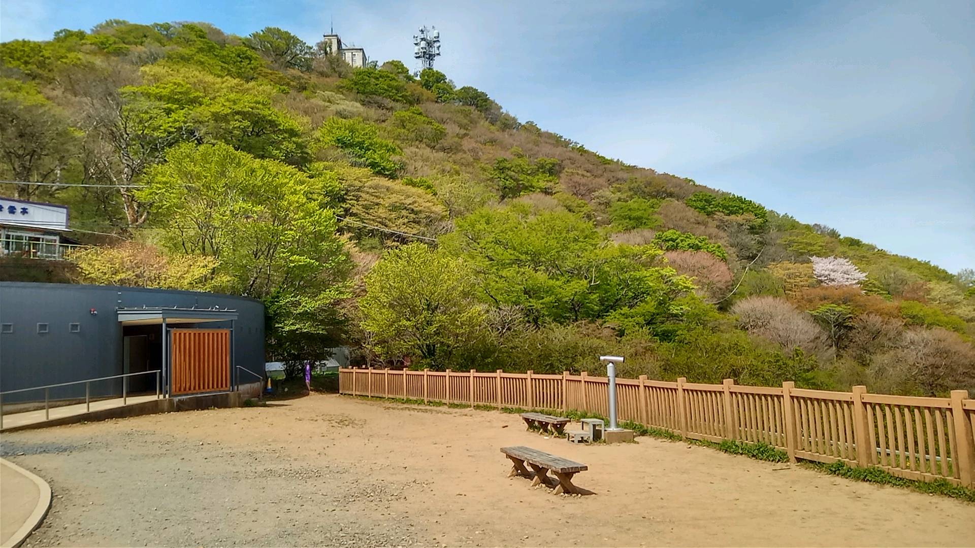 早朝のつつじヶ丘駐車場にはほとんど車は止まっていない。ロープウェイは午前9時からなので、それまで駐車場も入場券が出ない。「入場券なし」で精算する。
