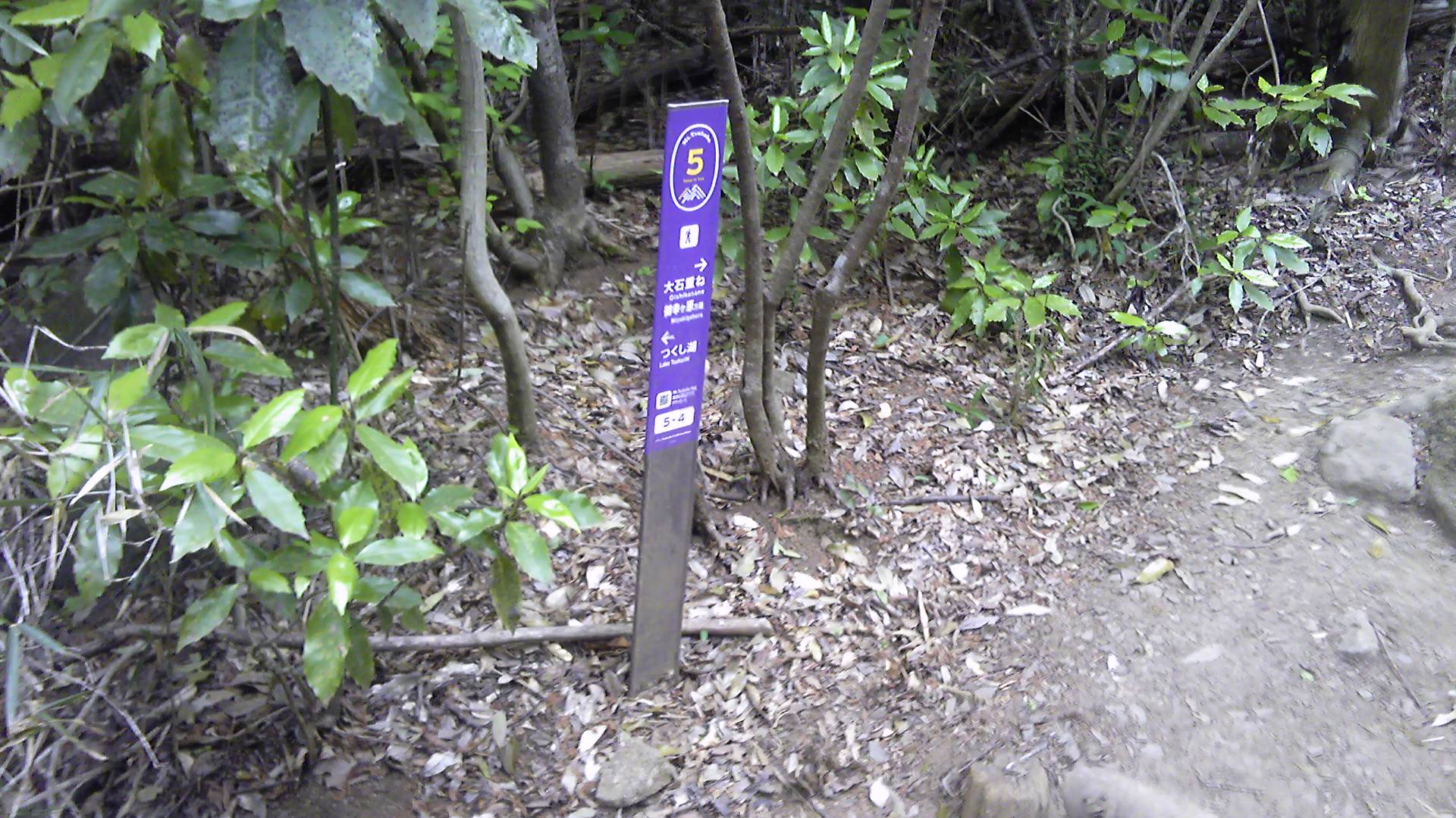 山頂付近を見回る。たいして広い頂上ではないが、四方向すべてに踏み跡が下っている。WEBによると、1号路・2号路というのがあるらしい。ともあれ、下りの時の話だ。