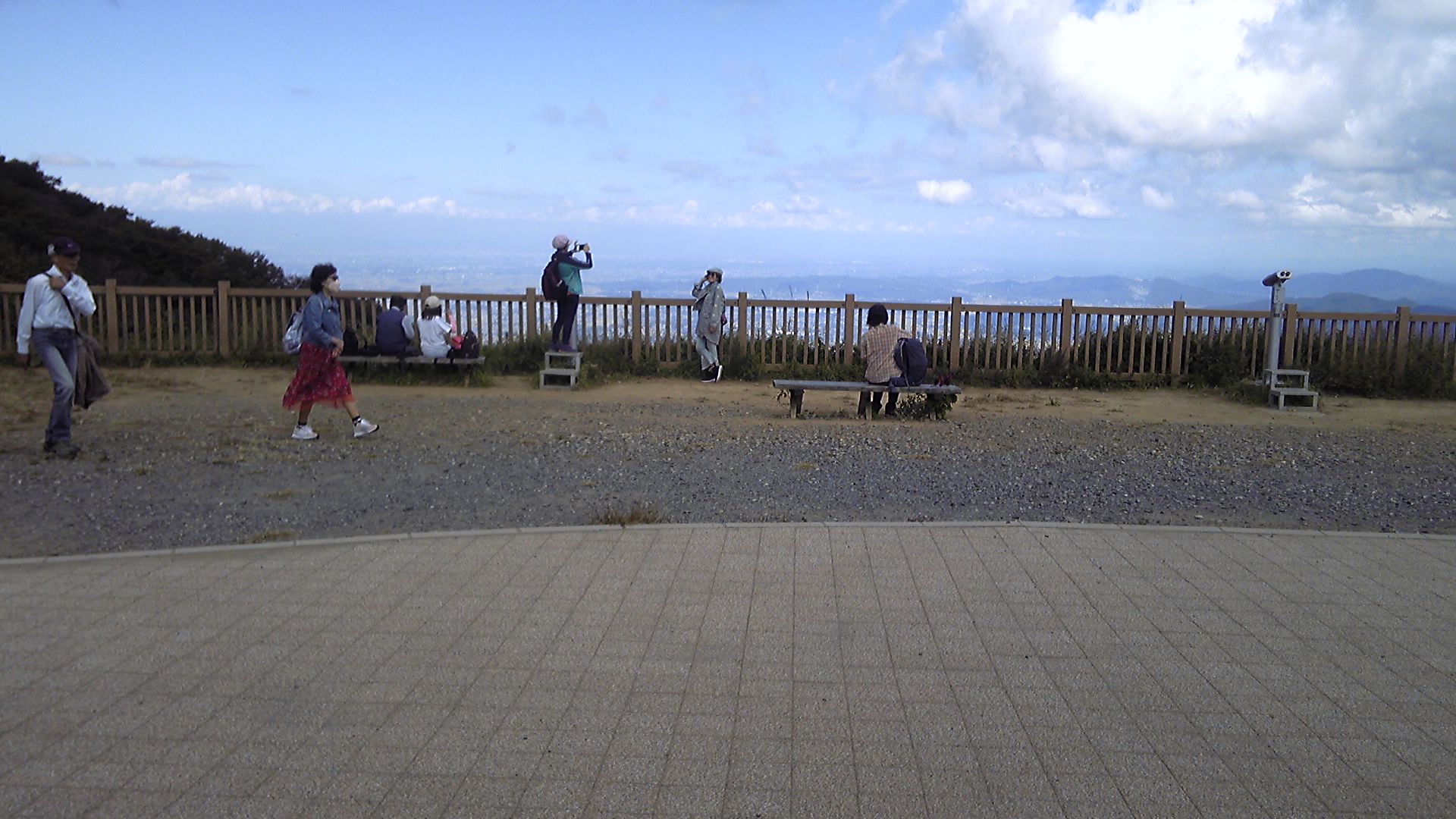 しばし、この眺望を一人占めする。まだ時刻は8時半前で、駐車場はかなり埋まっていたが稜線ではそれほど人は見なかった。とはいえ、それほど人数いられるよう広さではないし、座ってお弁当を広げたら1、2グループで満杯だろう。