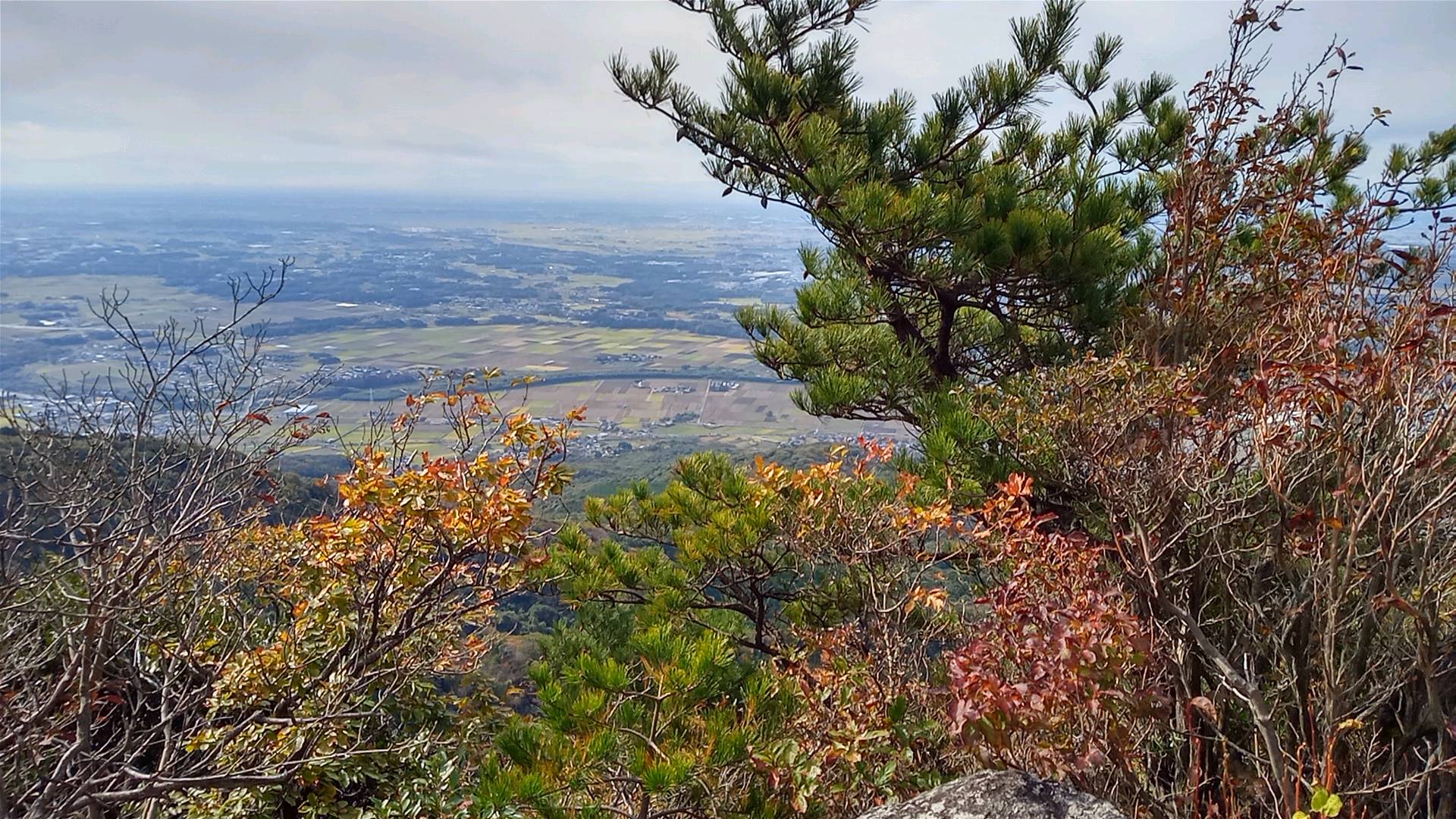 三角点から鶏足山へは、WEBによるとすぐ近くなのだが実際はかなり下る。一瞬、間違えたかと不安になるくらいだが、分岐はなかったはずだ。やがて登り坂となり、向こう側の景色が開けた。