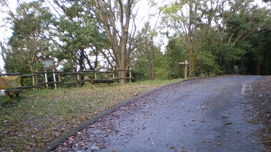 約1kmで向こう側の林道と合流する。すぐに二股に分かれるが、「国民宿舎」に向かうと山を下りてしまうので「真壁方面」へ。この林道はキャンプ場より向こうは舗装されているのだが、そこまで砂利道である。