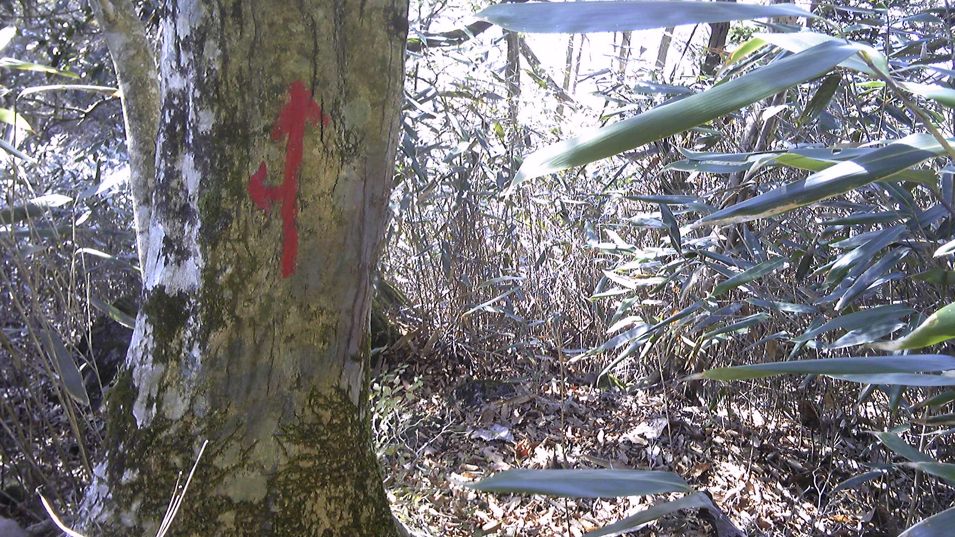 木の幹や岩にペンキでマークを付ける行為はあまり褒められたものではないが、それをさらにペンキで消したところで自然保護になる訳ではない。まして、標識もない場所なのだから、目印を消したら遭難につながりかねない。