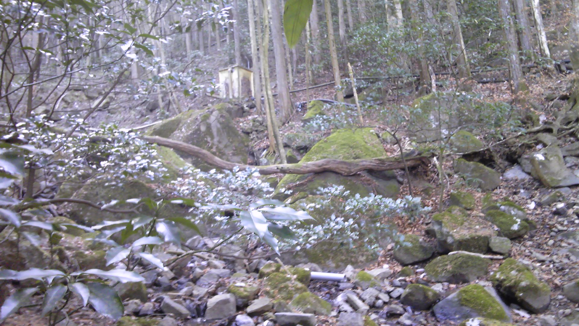そして驚いたのは、そこにWEBで見た五輪塔が建っていたことである。ということは、秋葉神社ルートを下りたつもりが、V字谷東尾根ルートに出てしまったのだ。