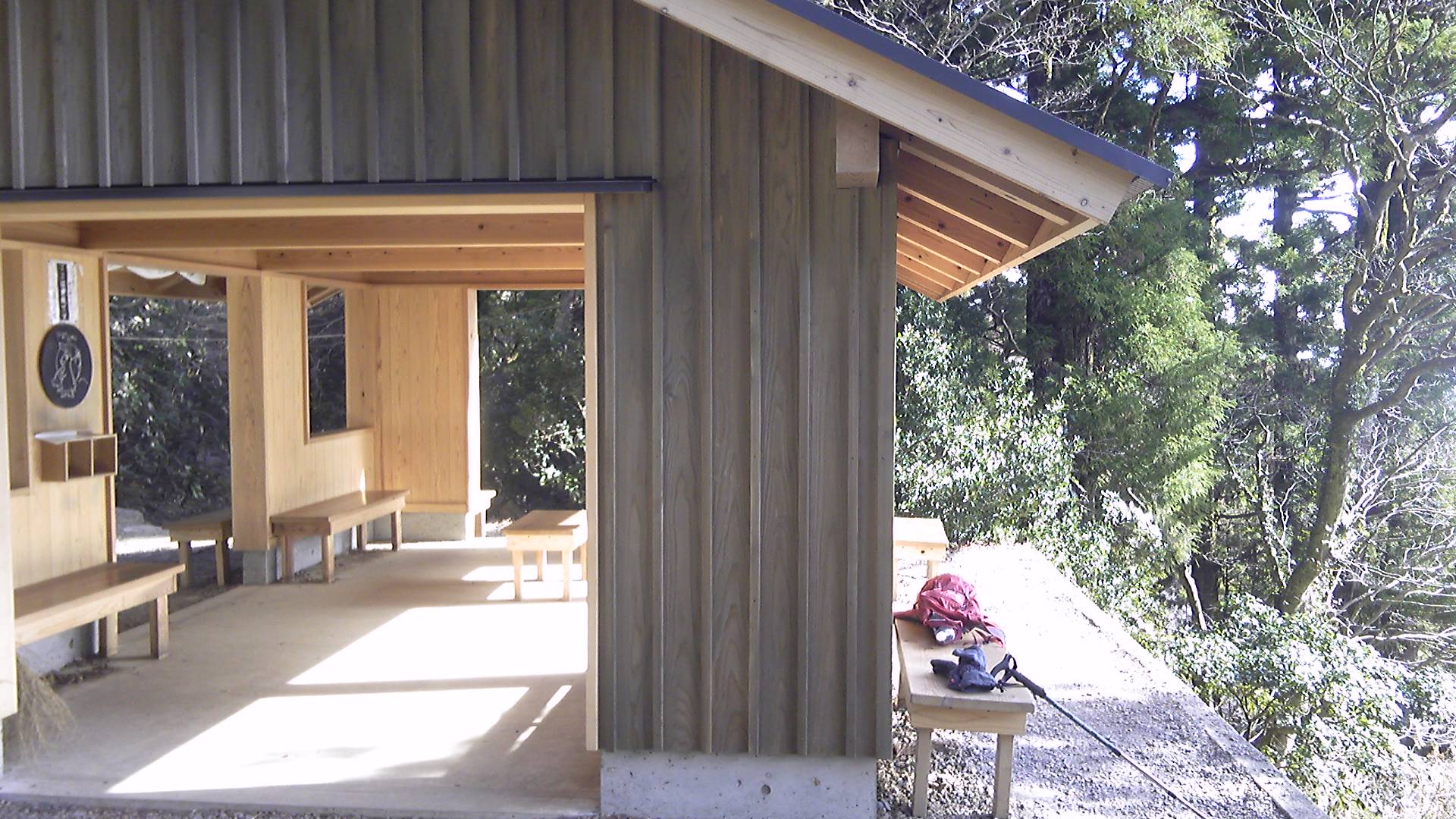 弁慶茶屋跡は避難小屋風になっている。小屋内に「ゴミはお持ち帰りください」と筑波山神社の貼り紙。書体が「天罰下る」と同じだったが、天罰とは書いてなかった。
