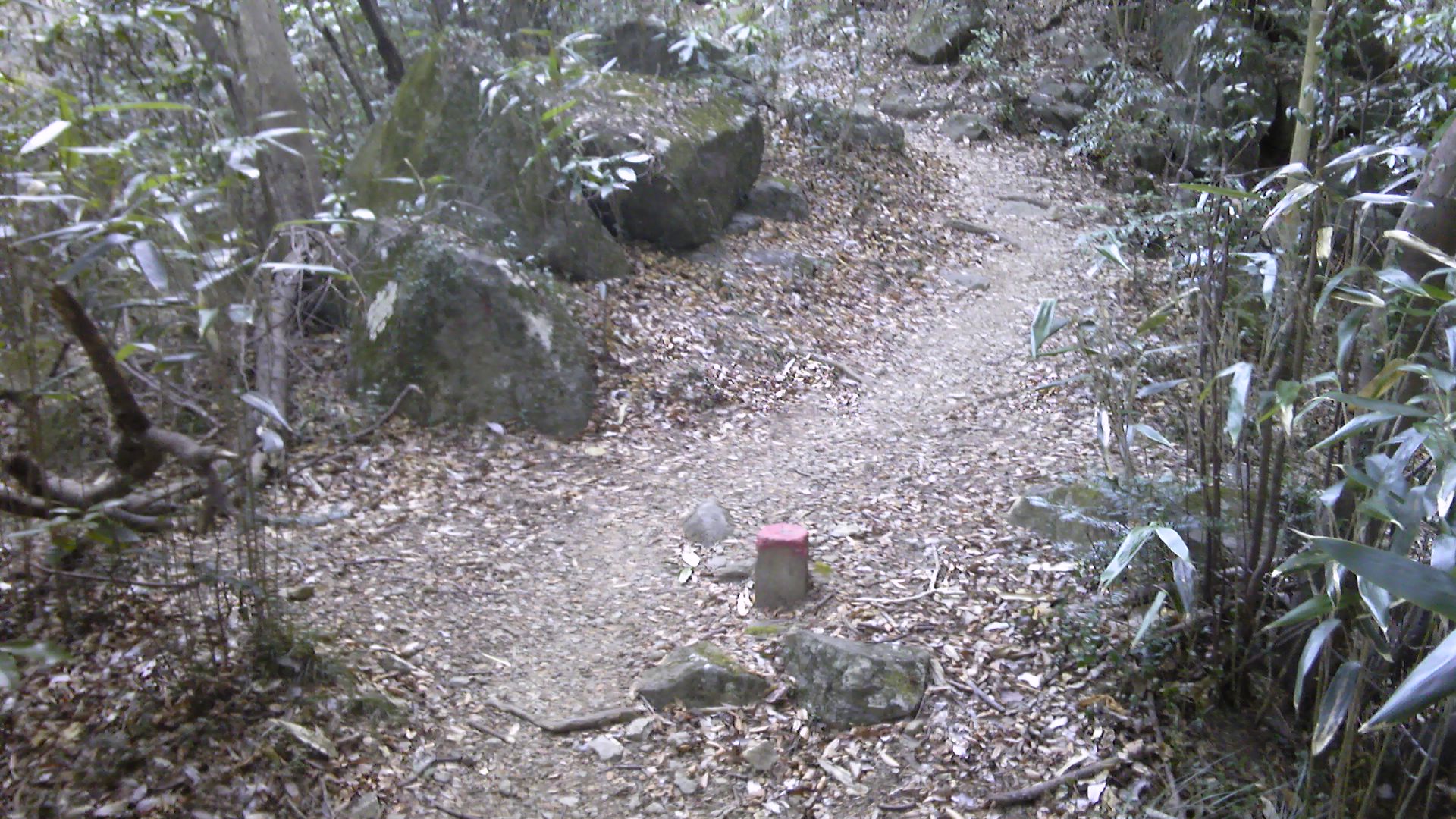 みかん園ルートは推奨登山道ではないが、かつて1/25000図に掲載されていた登山道である。つくば市と桜川市の市境で国有林管理道でもあるので、廃道化している訳でもない。いまでも十分登山道の役目を果たしている。