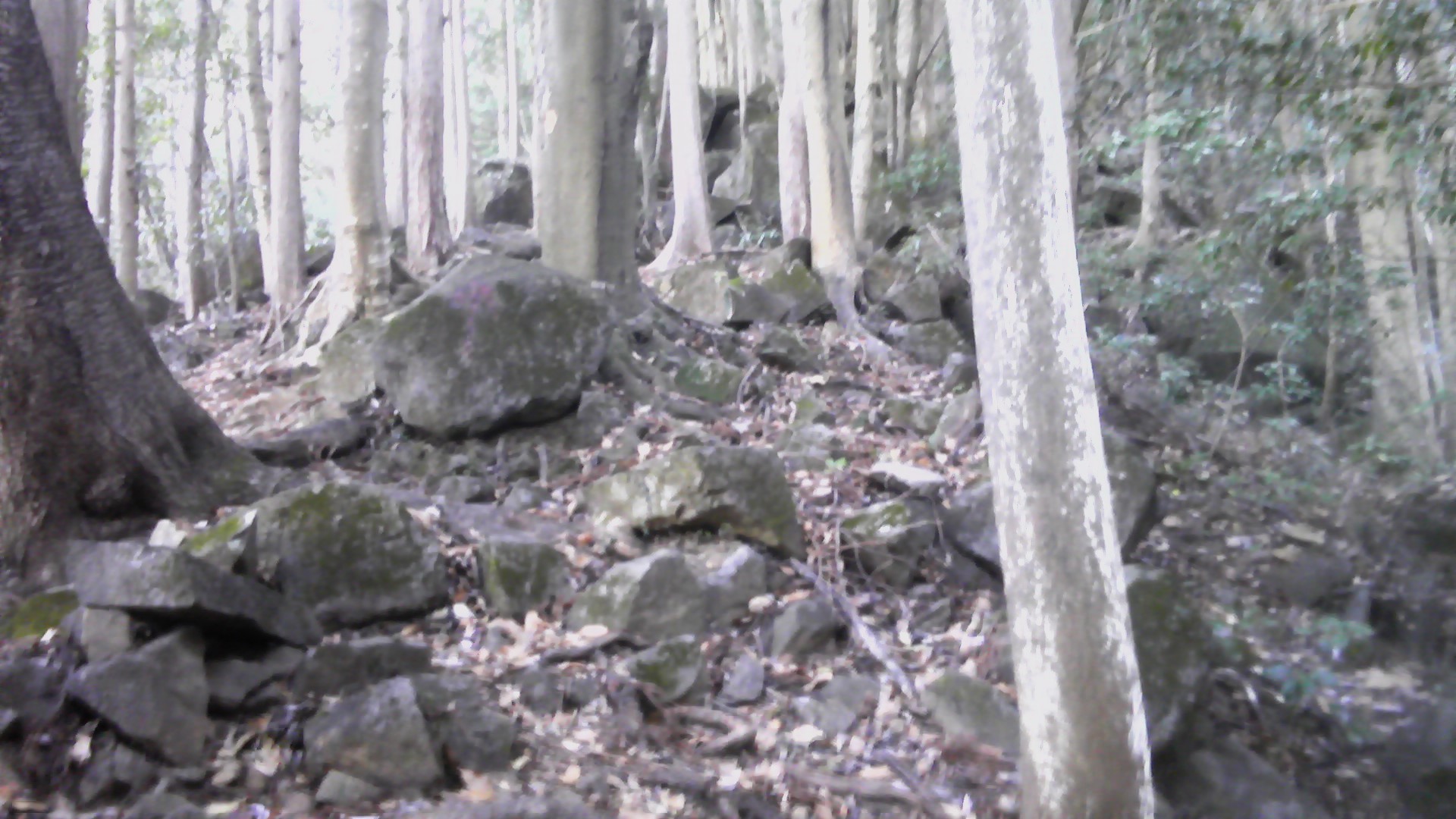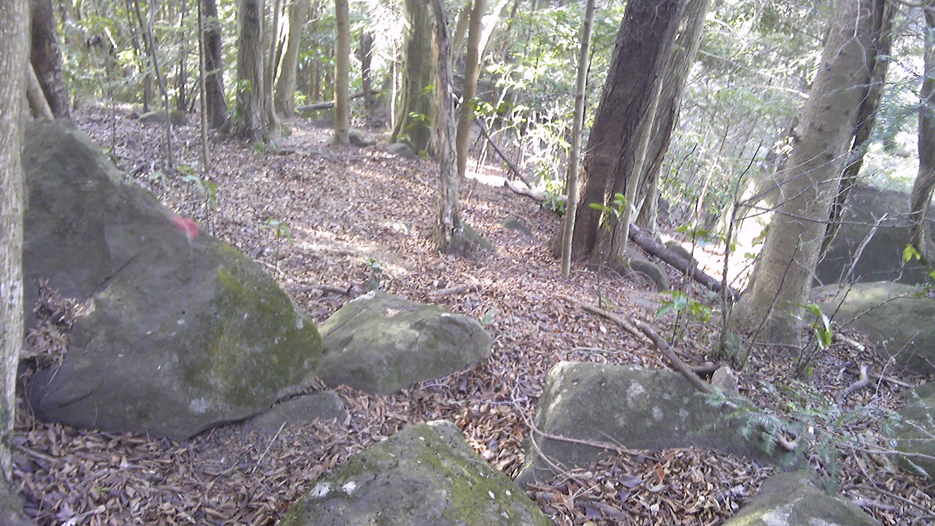 一息ついて落ち着いたのがよかったのか、すぐにペンキマークの岩とはっきりした踏み跡を見つけることができた。ここからはすんなり進むことができたから、なんとか八五山ルートに乗ることができたようだ。
