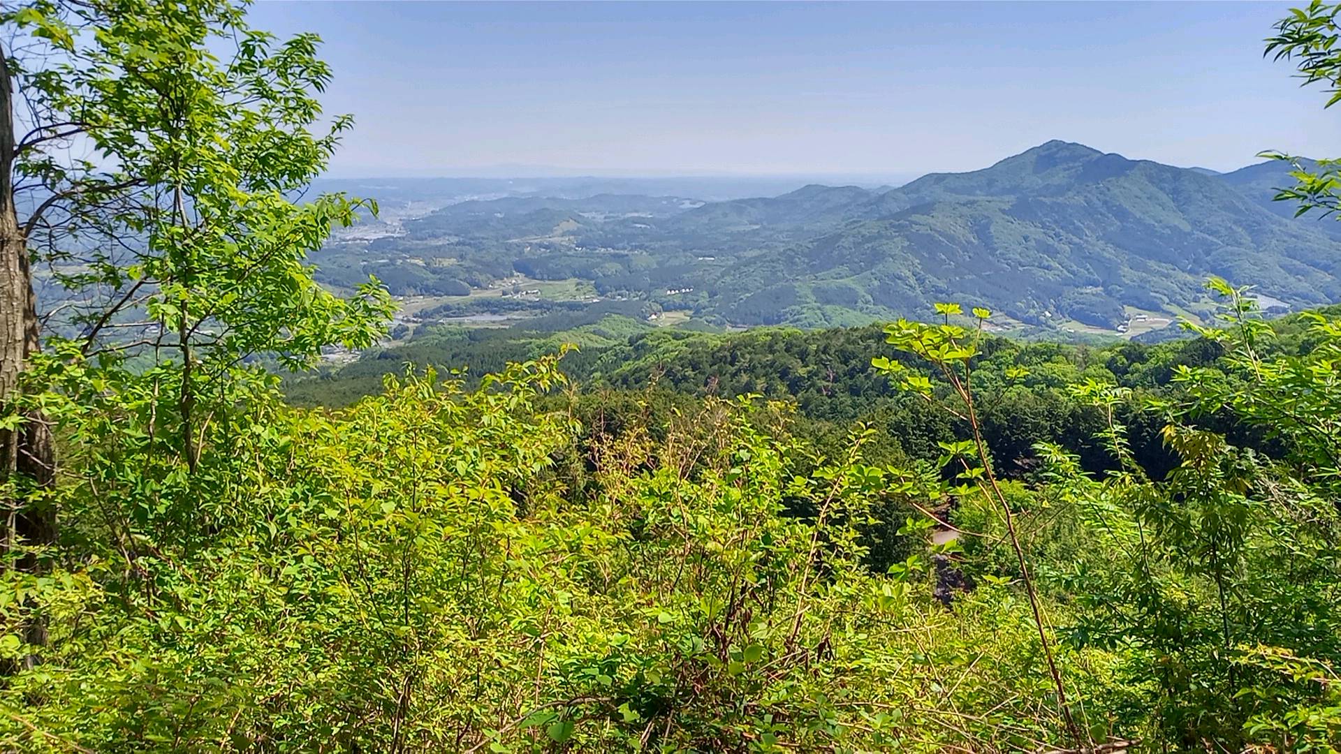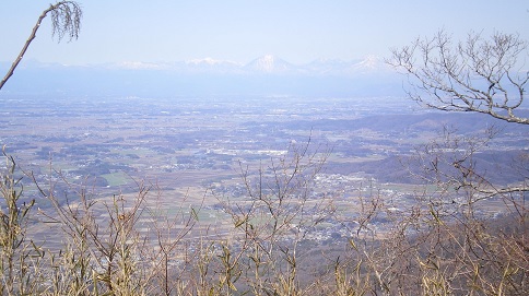 そして、この分岐に展望の開けている場所がある。御嶽山や雨巻山より雄大かもしれない。そして、ここからは西側の眺めが広がる。日光連山が見えるはずであった。しかしこの日は水平線間際が霞んでいて、残念ながら見ることはできなかった。