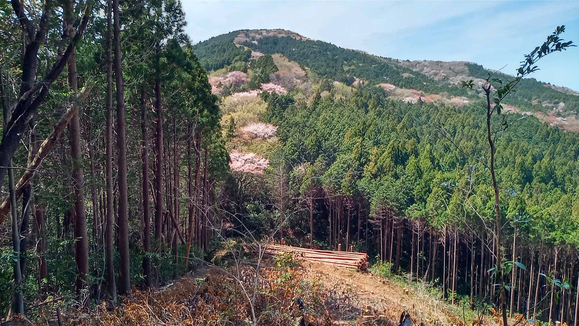 これから下るのだと私が言うと、「ここを何度も登るのですが、同じ道で下れたことがない。いつも別の道になってしまう。まあ、いずれ林道に突き当たるから問題ないのだが」とおっしゃる。