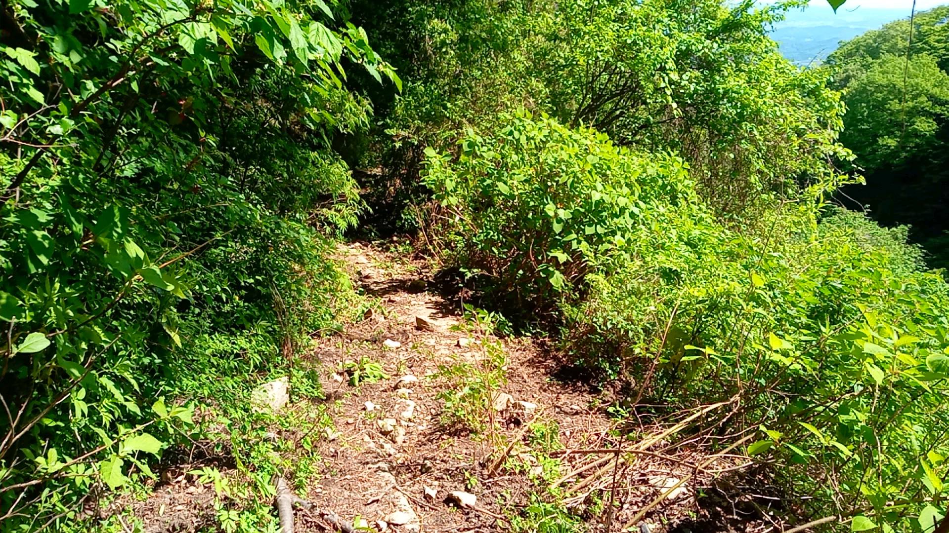 先だってはトレランの登山者が下りてきたので安心していたのだけれど、傾斜は急だし足を置く場所もない。こんな場所を走り下りてくるのだから大したものだが、足を滑らせれば転倒・滑落の危険がある道である。