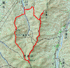 三登谷山から大川戸まで、ようやく下り基調の道となった。この日はなだらかな稜線歩きを期待していたらアップダウンが続き、累積標高差は900m近くなった。とはいえ、コースそのものは整備されていて、薮漕ぎしたり岩がごつごつということもない。