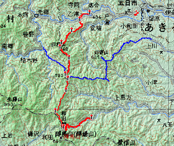 それにしても、刈寄山(かりよせやま)にしろ市道山(いちみちやま)にしろ、読みにくい名前である。とはいえ武蔵五日市から奥に行くと、払沢(ほっさわ)の滝とか笛吹(うずしき)・人里(へんぼり)といったさらに難読の地名があるから、漢字のとおり読めばいいだけまだ分かりやすいと言えなくもない。