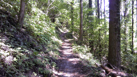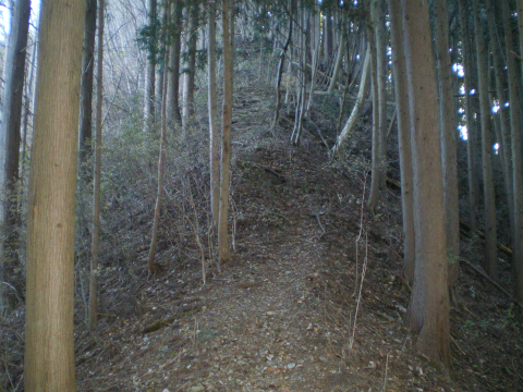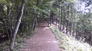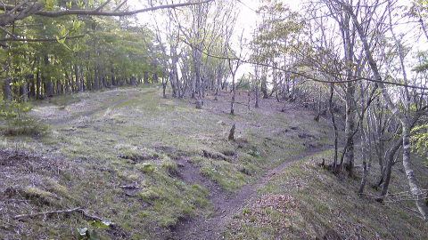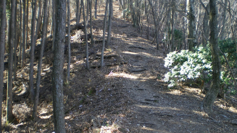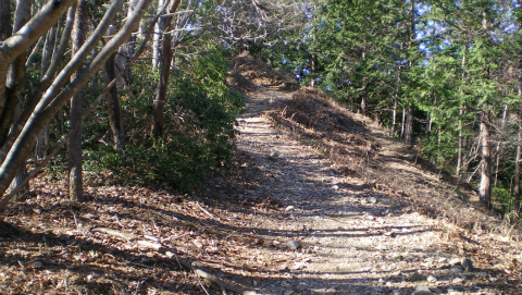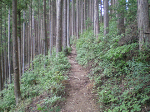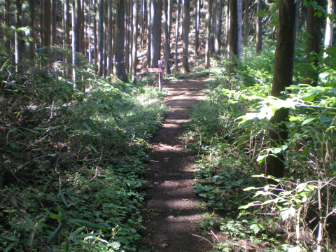 黒山方向と有間ダム方向の分岐点であるゴンジリ峠までは急坂と書いてあったが、登ってきたルートに比べると随分とゆるやかに思われた。それと、いったん下った後は雰囲気のいい平坦路になって、さすがに下りは楽だと安心してしまったくらいである。