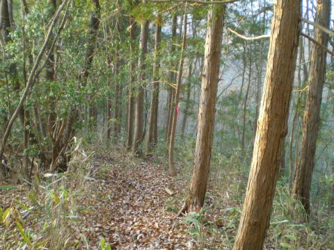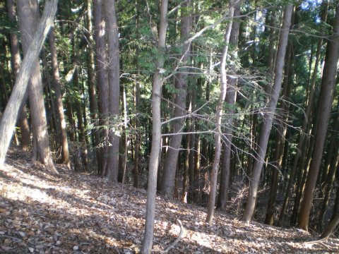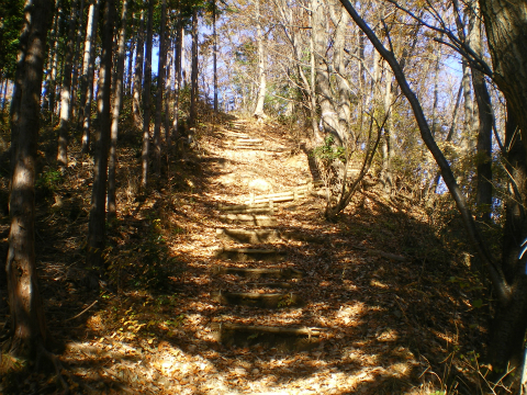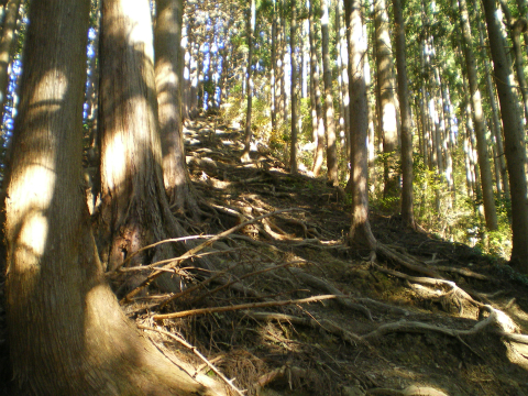 もう一つ、進むことにした要因があって、このあたりで12月にトレラン大会がありますという掲示が何ヵ所かにあったのである(注.2016/12/23、TOKYO八峰マウンテントレイル)。トレランができるくらいだから、それほどきつい斜面ではないだろうと思ったのだが、例によってそれは甘かったのである。