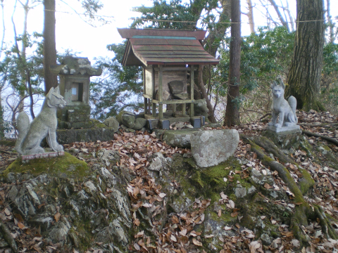 頂上には今熊神社の本殿があり、傍らに植えられた紅葉がみごとである。神社の前は広場になっており、木のテーブルとベンチがいくつか置かれている。ここまではハイキングコースなので、これから先と比べるとかなり歩きやすい。時刻は9時15分、登山口からちょうど1時間で登ることができた。