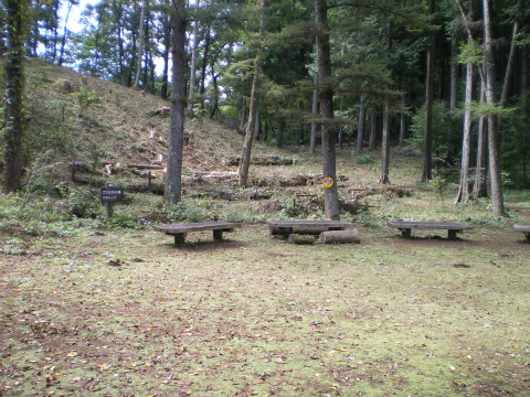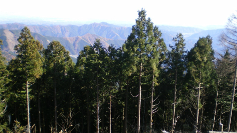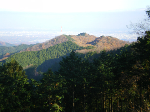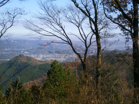 東屋の前から、かなり遠くなった武蔵五日市市街を望むことができる。 反対側からは、条件がよければ富士山が見えるらしい。後から登ってきたグループの人がそう言っていた。この日は低空に雲がかかっていて見えなかったが、風もなく寒くもなく、穏やかな日差しがふりそそぐ登山日和でたいへん気持ちがいい。
