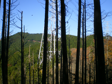 林道交差点からは、送電線に沿って南に向かう。ガイドブックによるとトッキリ場というピークか峠があるはずなのだが、それらしい場所が見つからない。方向は南で間違いないし、左下には林道が見え隠れするので大丈夫とは思うが、そろそろ西へ方向転換してもいい頃合いである。