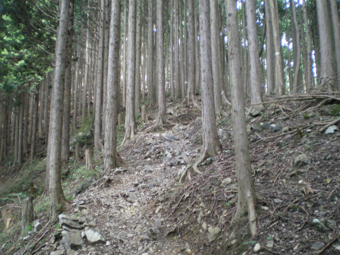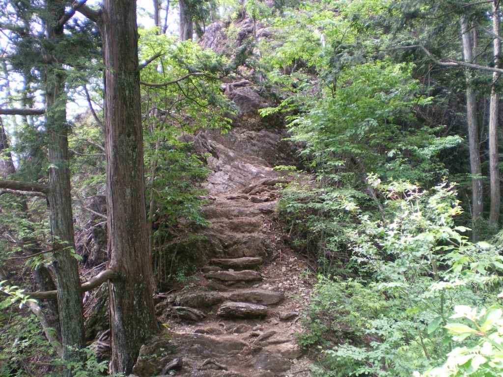 谷沿いの道から祠を上がって急傾斜の山道になると、あとは普通の登りである。登りだからきついことはきついが、まあ、苦しいのは当り前である。それにこの日は日帰り装備で、リュックも出発時で6kgと軽い。