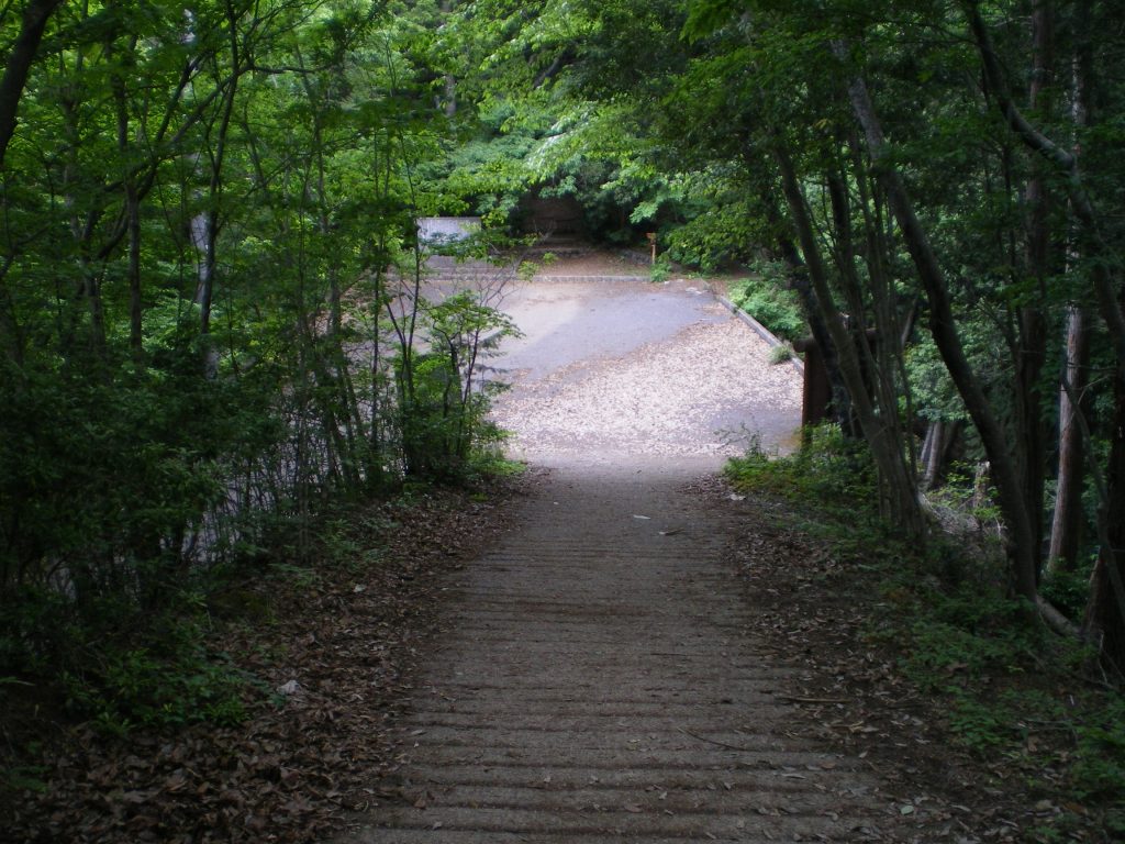 谷道に入ると、予想していた以上に急傾斜であった。おまけに、じめじめしていて暗い。 「マムシ注意」の看板があり、いまにも横の藪から出てきそうな雰囲気である。しばらく行くと、道の真ん中にでっかいカジカガエルがじっとしている。こんなに大きなカエルがいるくらいだから、マムシだっているだろう。