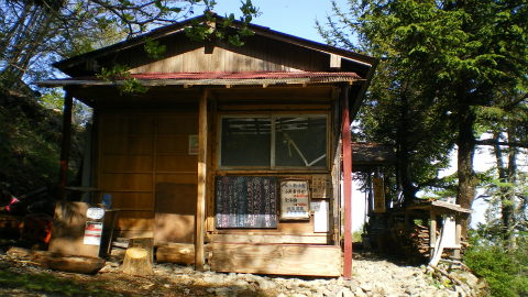 予想外だったのは、四方を林に囲まれて、ほとんど展望がなかったことである。例のヤマケイガイドには頂上から石尾根を一望する写真が載っているのだが、木々の間からわずかに山並みが見えるくらいで、どこからそういう景色が見られるのかよく分からなかった。コースタイムといい避難小屋や山頂の写真といい、誤解を招くガイドブックである。