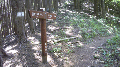 道標によると、小沢バス停から御前山までは6.6kmあるらしい。しかし、重要なのは距離ではなく標高差で、およそ1070mある。私のペースは標高差300mに1時間だから、頂上まで3時間半かかる計算である。そして、ヤマケイのガイド本には宮ヶ谷戸から御前山を経て境橋に下りるルートの所要時間は4時間55分と書いてある。頂上までほぼ3時間ということになる。