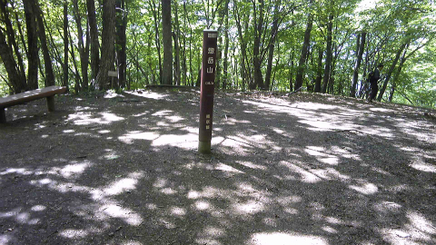 このピークはたいへん虫が多くて、ベンチで昼寝しているおじさんも虫除けのネットをかぶっていた。山名標は御前山よりグレードダウンして、刈寄山・市道山と同じ角材のものだった。それでも、ちゃんと「東京都」と書いてある。