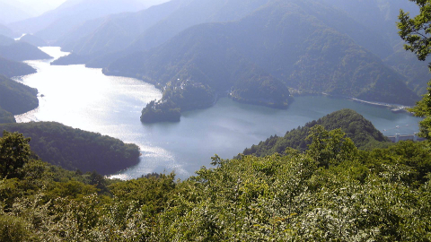 そのすぐ先には、奥多摩湖を望む立派な展望台があった。眼下に、地図で見るのと同じ形の奥多摩湖が見える。この日は林の中ばかりを歩いてきて景色が開けた場所はほとんどなかったので、たいへん気持ちのいい景色だった。