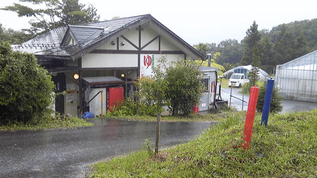 下山後は日帰り温泉「ほの香」で汗を流す。お風呂を上がると本降りの雨になっていて驚いた。