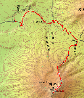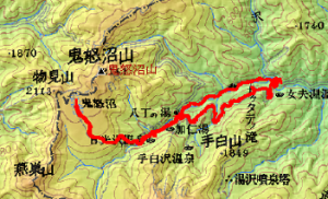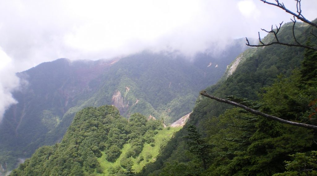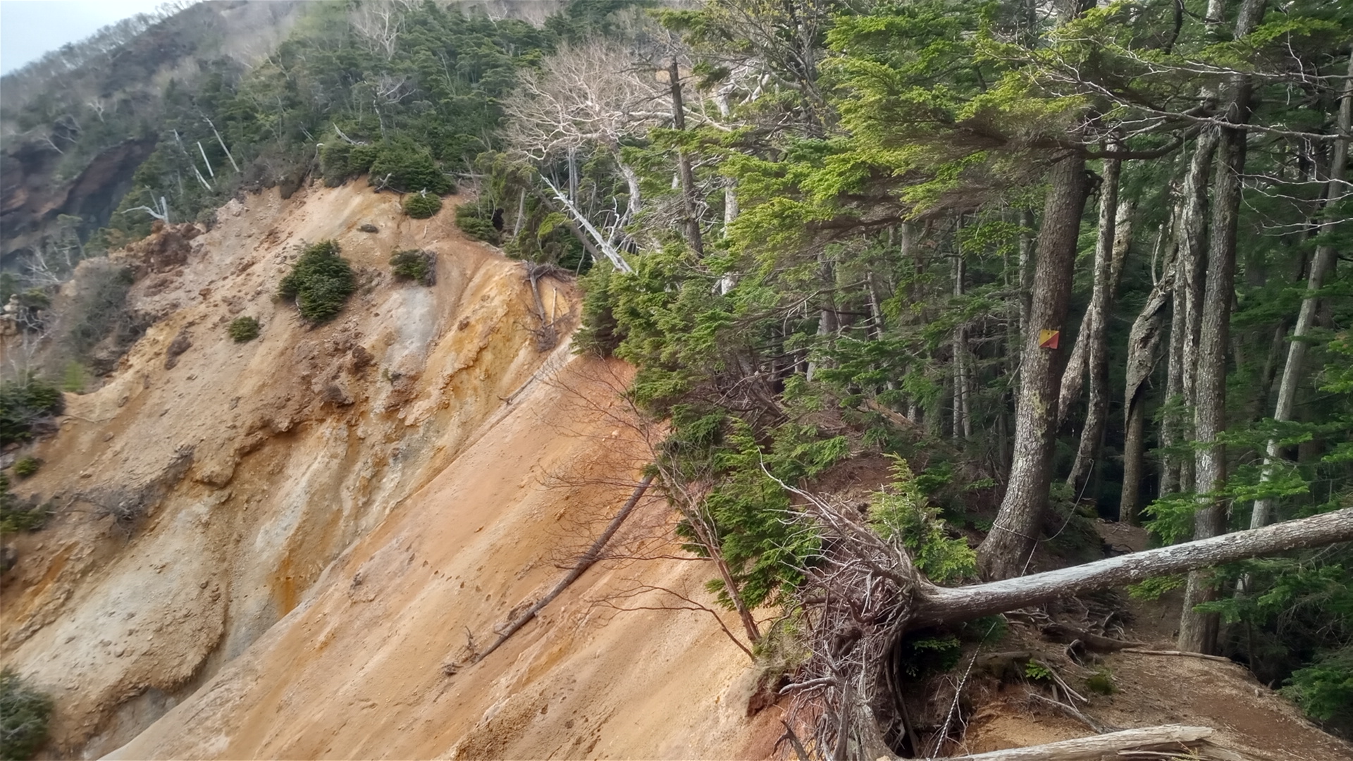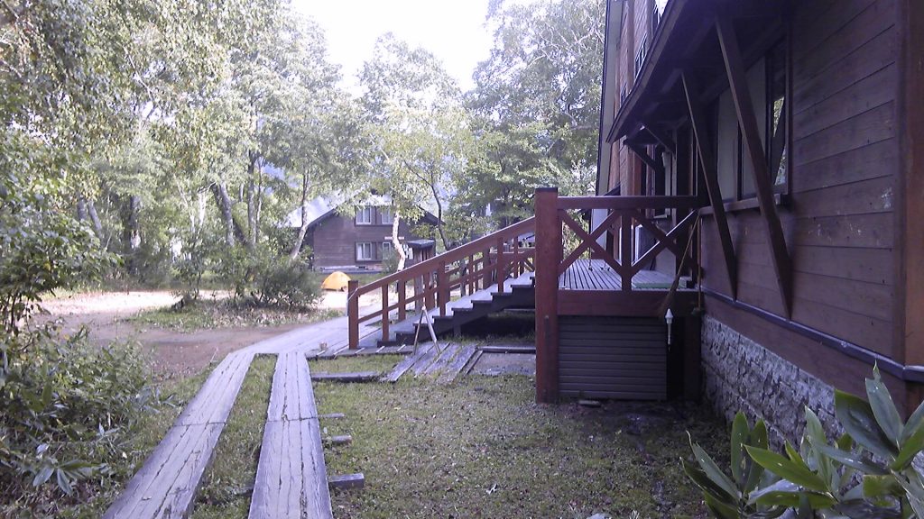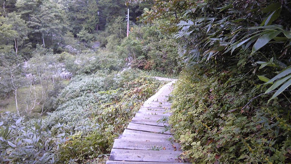 右足と左足を交互に出していれば着くだろうと思っていたら最初の1時間はずっと登り坂で、最後の方にヘアピンカーブで一気に標高を下げるというハードな道だった。それでも日光澤温泉から2時間ちょっとだから、時間的には登りの遊歩道経由とほとんど変わらなかった。