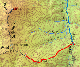 思えば、1/25000図を見ると小丸山から赤薙山までそれほど距離がないように見えるので、標高差400mにしても1時間と少しで登れるだろうと思っていた。歩き足りなければ、2203ピークまで歩こうと思っていたくらいである。