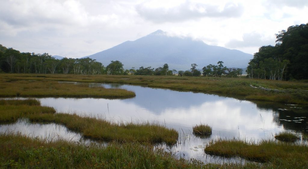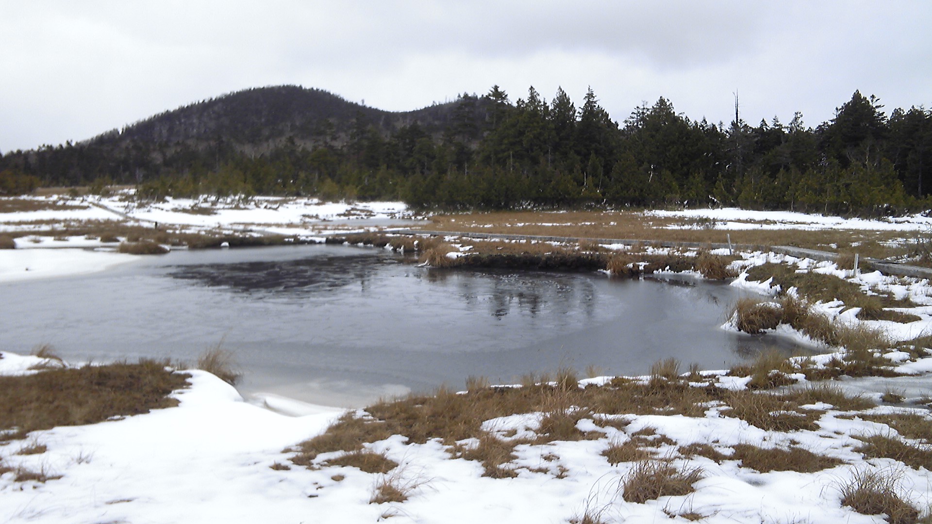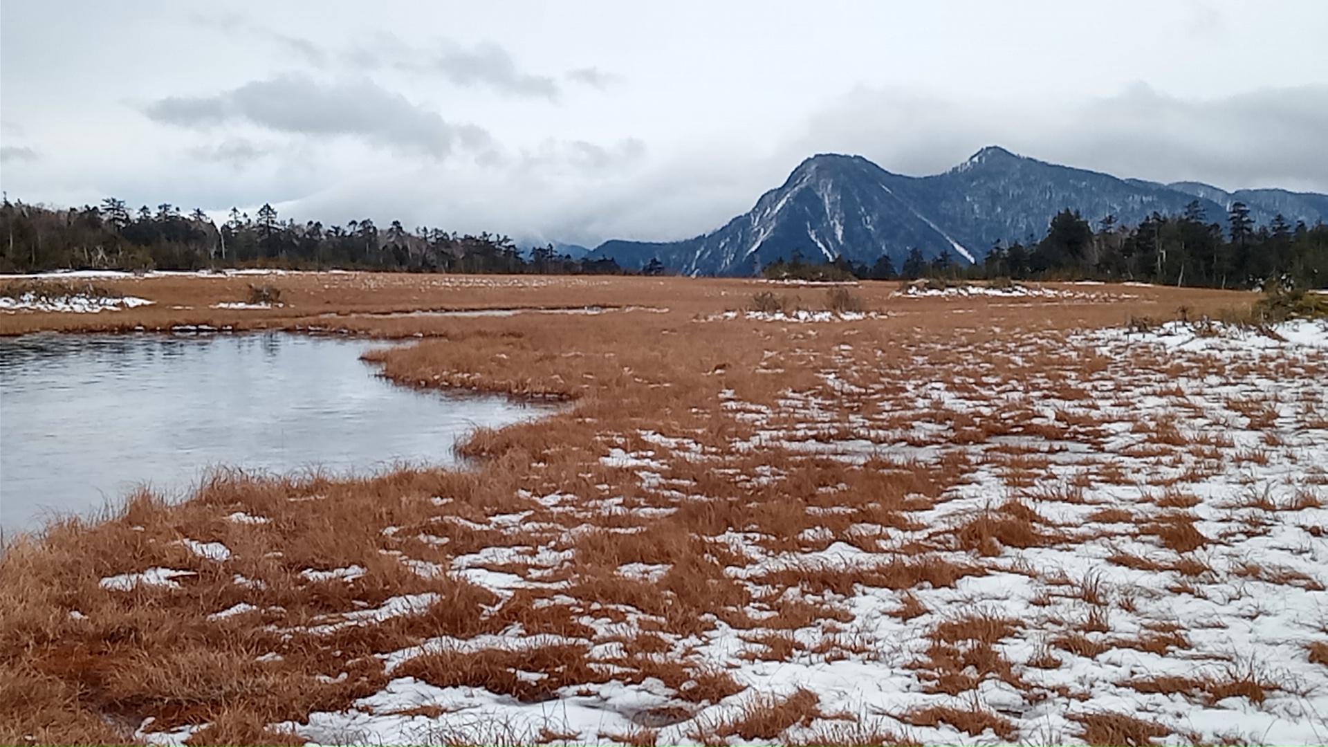 日本一標高の高い高層湿原は、まっさきに冬になる高層湿原でもありました。バックは鬼怒沼山。