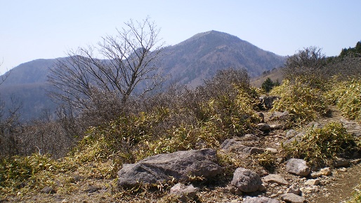 ここでは根名草山の右後方、稜線の向こうから日光白根山が顔をのぞかせた。それほど距離はないはずなのに、ずいぶんと白くぼんやり見える。一応カメラで撮ったのだが、残念ながら写っていなかった。