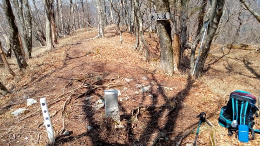 ヒナタオソロシ展望台の分岐で遊歩道と分かれる。傾斜がきつくなるのはここから。
