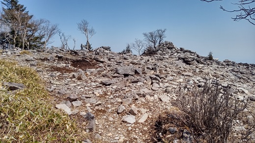 ササと交替交替に、ガレ場が現れる。いずれにしても歩きにくい道だ。