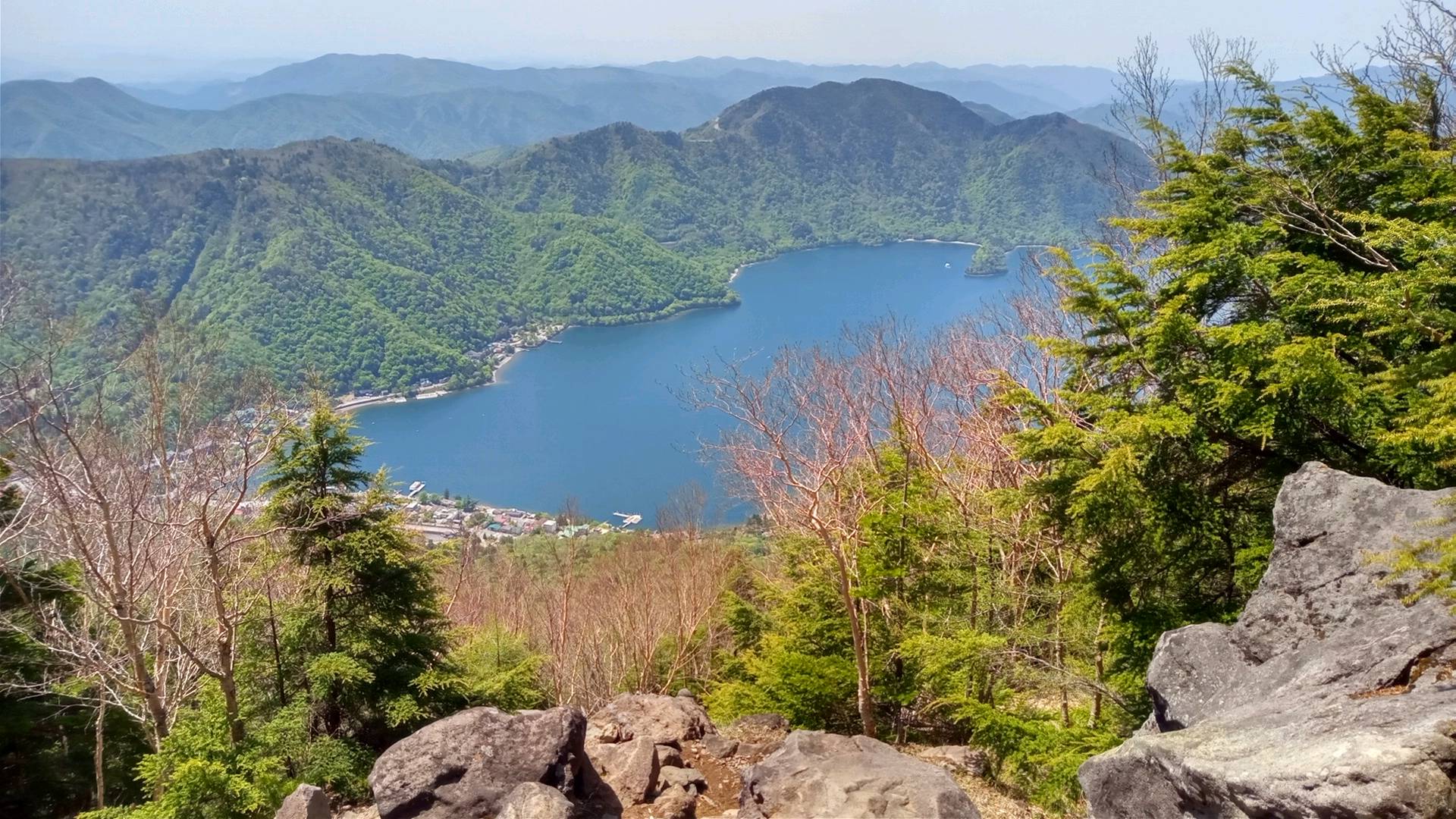 小丸山まで1時間半ほどで下りた。正午には下山できたらいいと思っていたので、ここまで下りてようやくほっとする。小丸山には混むというほどではないものの結構な人が登って来ていた。展望台の上は満員だったので、下のベンチに腰を下ろす。