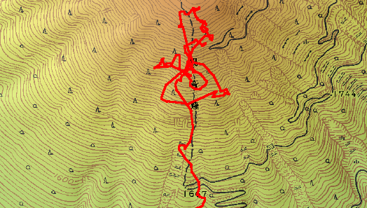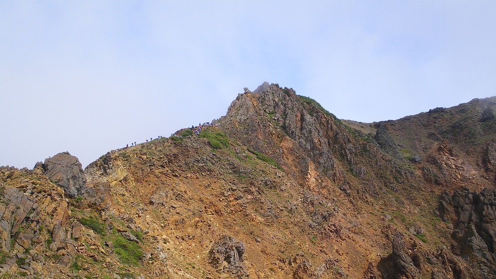 ハチは来るしヒザは痛いし、ここまでで引き返すか、と覚悟した。GPSを見るとまだ頂上まで標高差100mある。焼石金剛からかなり登ってきたはずなのに、まだ100mもある。