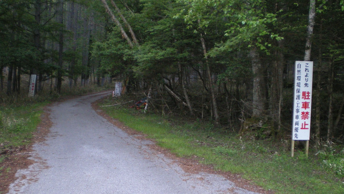 鳩待峠までは狭いくねくねした坂である。この日は平日なので一般車でも鳩待峠まで入れるが、休日には車で入れるのは戸倉までで、すべての人が乗合バスに乗り換えなくてはならない。そういう場合はバスになるが、バスだと道幅一杯になりそうだった。