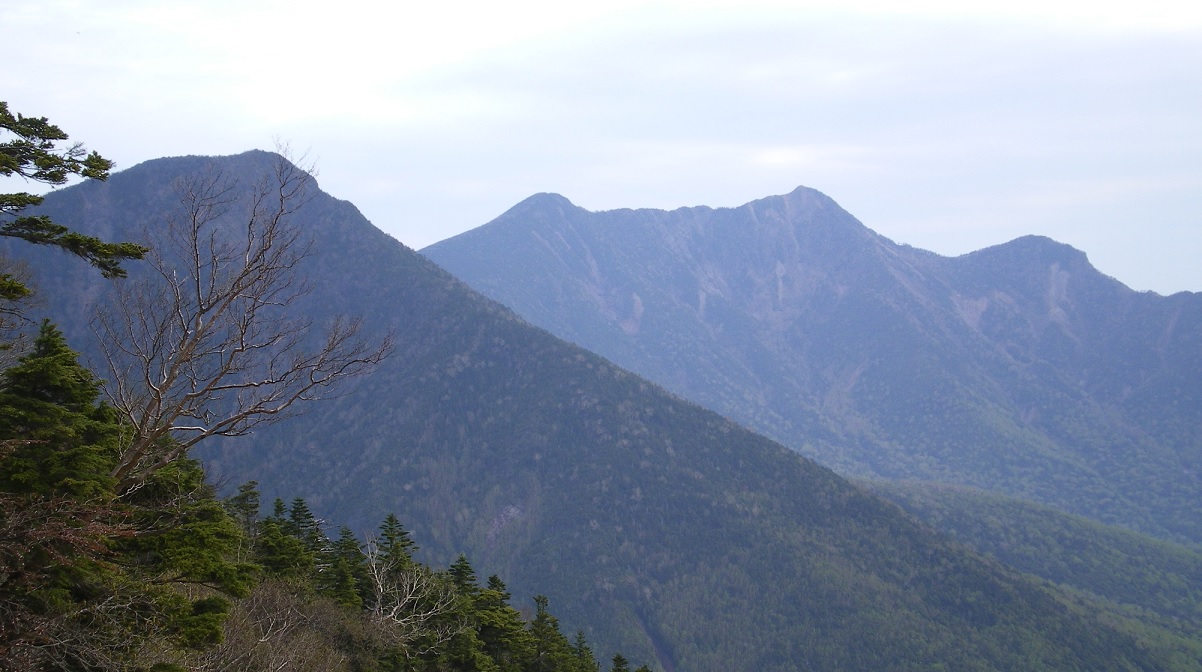 歩きやすい尾根はほどなく林に入り、暗いうっそうとした木々の中の急登となる。コースマップにはコメツガ、ダケカンバと書かれているが、いずれにせよ森林限界近くに育つ自然林で、幹も枝も曲がりくねっている。