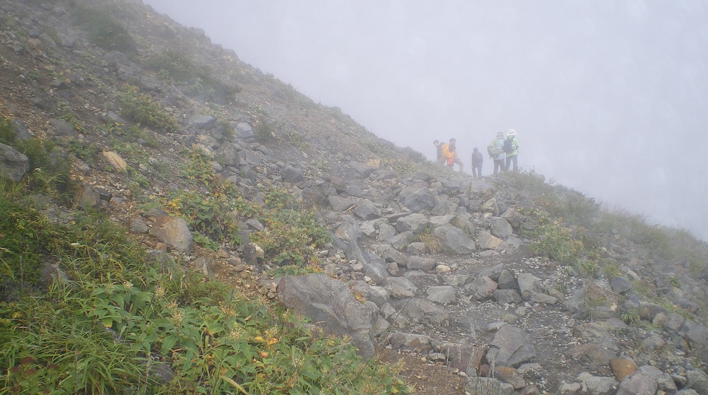 ここから上で、3組ほどのパーティーとすれ違った。シニア夫婦、女性の単独行、シニア夫婦の順である。日光澤温泉泊の私だからこの時間から登れるので、女夫渕まで戻るとしたらギリギリの時間かもしれない。