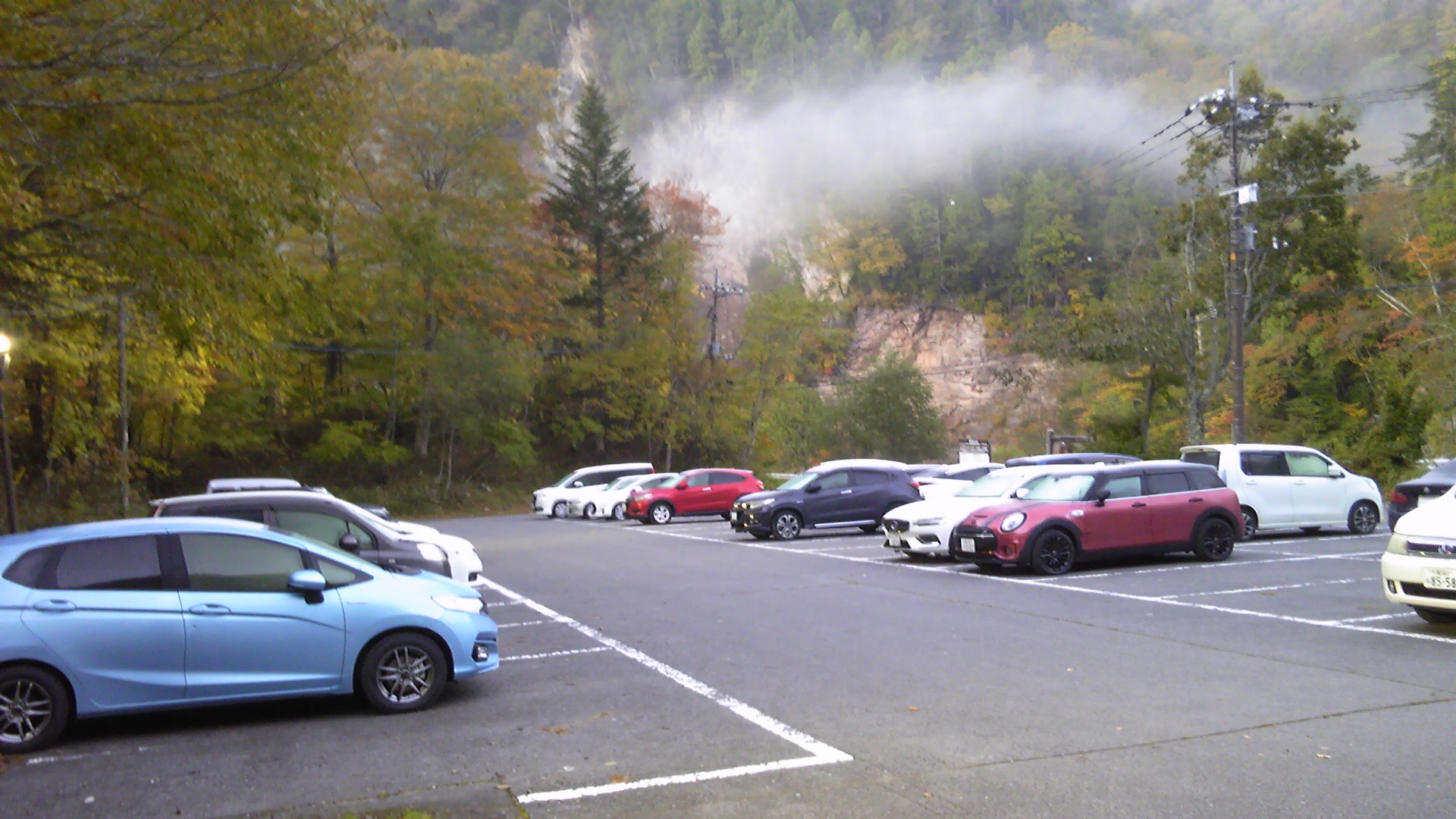 コースタイム1時間40分の女夫渕・日光澤間に2時間以上かかり、日光澤温泉に到着したのは8時20分になった。予約時に、登りで通る時に手続きしてくれと言われていたので、ちょうど車のところにいたご主人に声をかける。