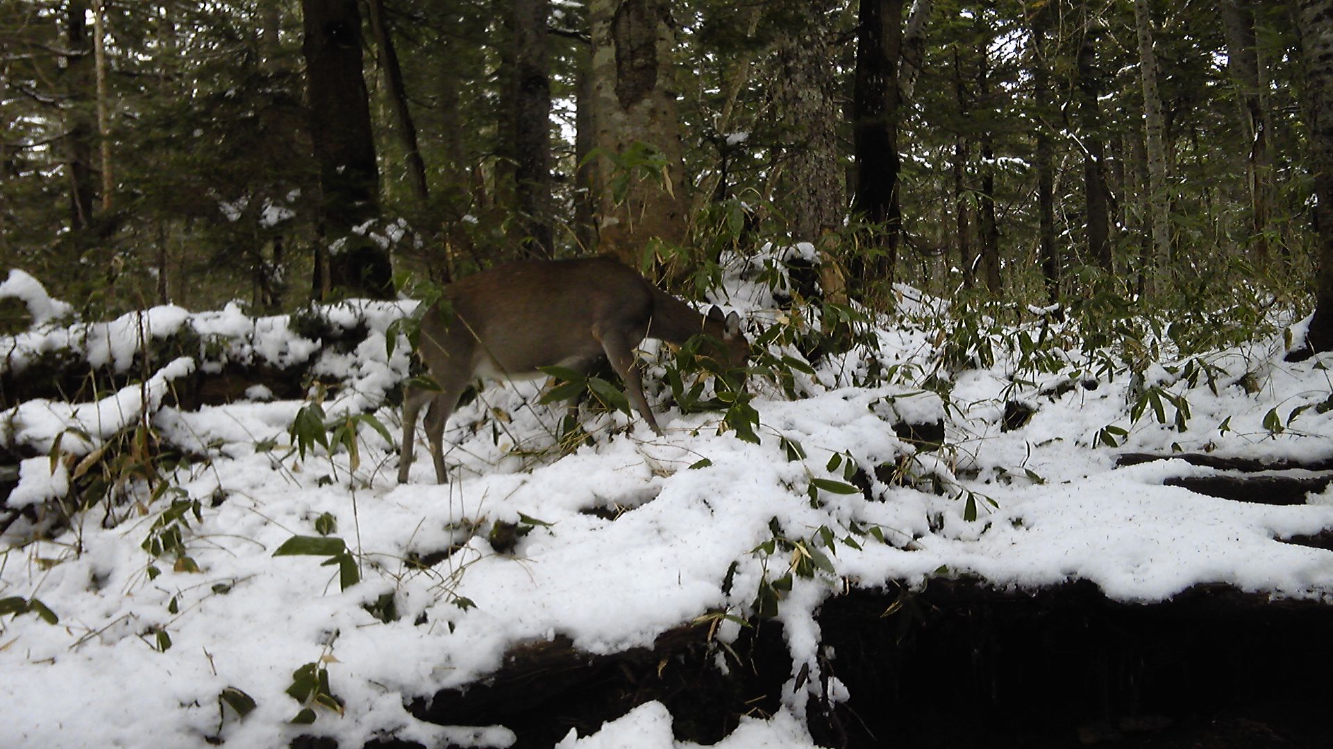 木の皮を食べるくらいだから、ササの葉も食べるのだろうとその時思ったのだけれど、帰ってから調べるとササは冬の間のシカの主食だそうだ。