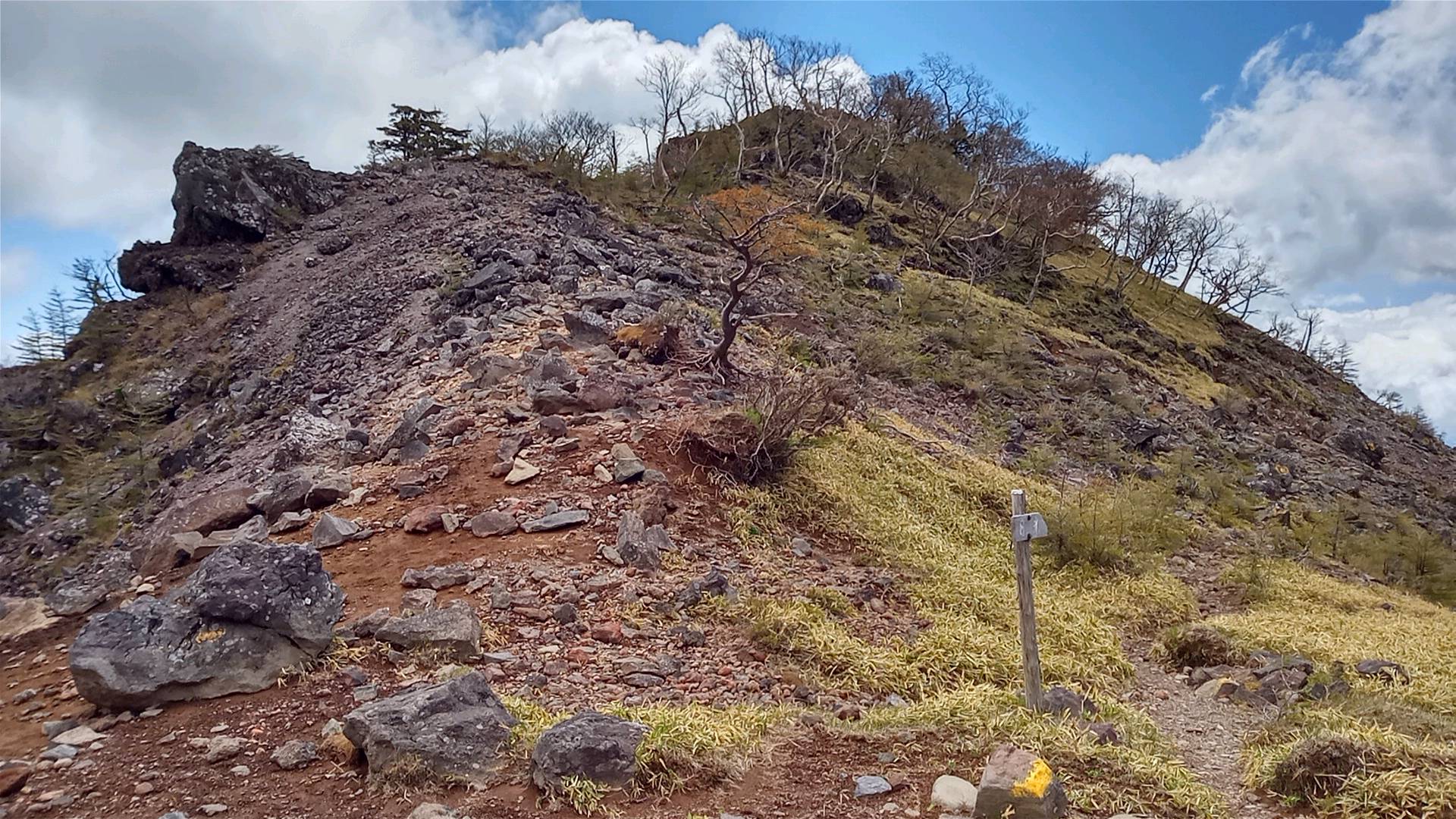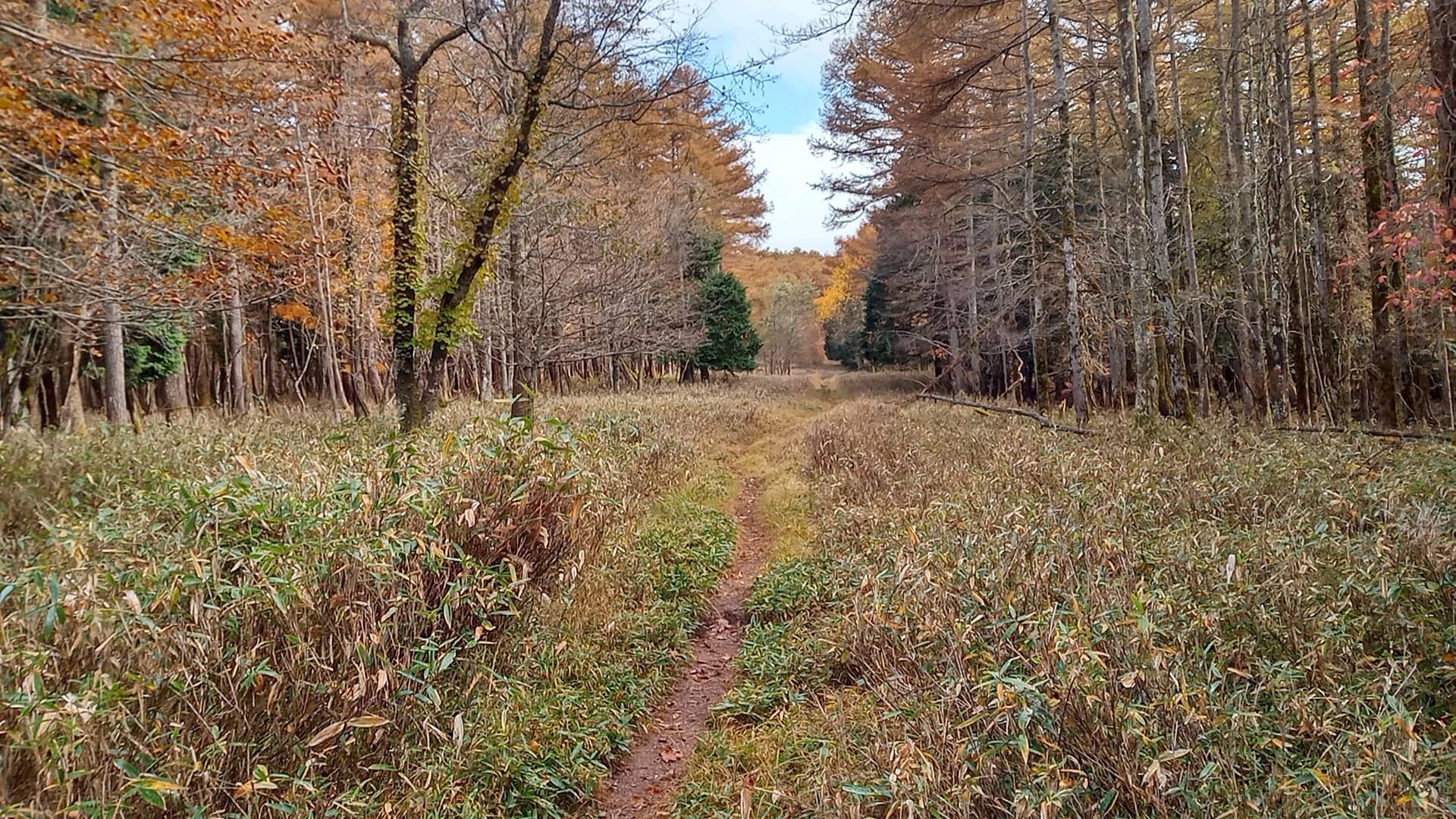 高原山の向こう側より、かなり歩きやすい道だ。スキー場だっただけに、起伏はゆるやかで見通しも開けている。