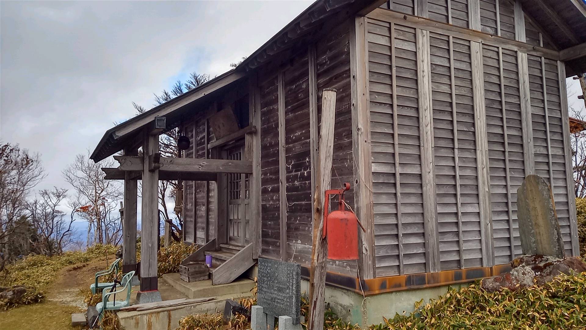 ただ、参拝登山は定期的に行われているようで、プラスチックの椅子が登山道の要所に2つずつ置かれていた。山頂の神社前にもあったが、何年か前の写真には写っていないので、ここ数年で置かれたもののようだ。