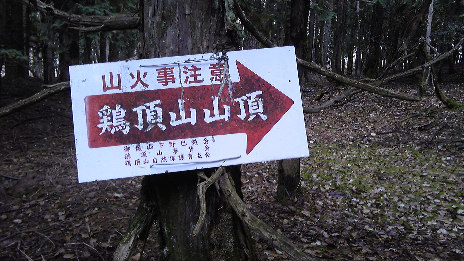 このあたりから、「→鶏頂山山頂」の案内板が出てくる。設置しているのは「御嶽山下野巴教会」、木曽御嶽本教の分教会らしい。