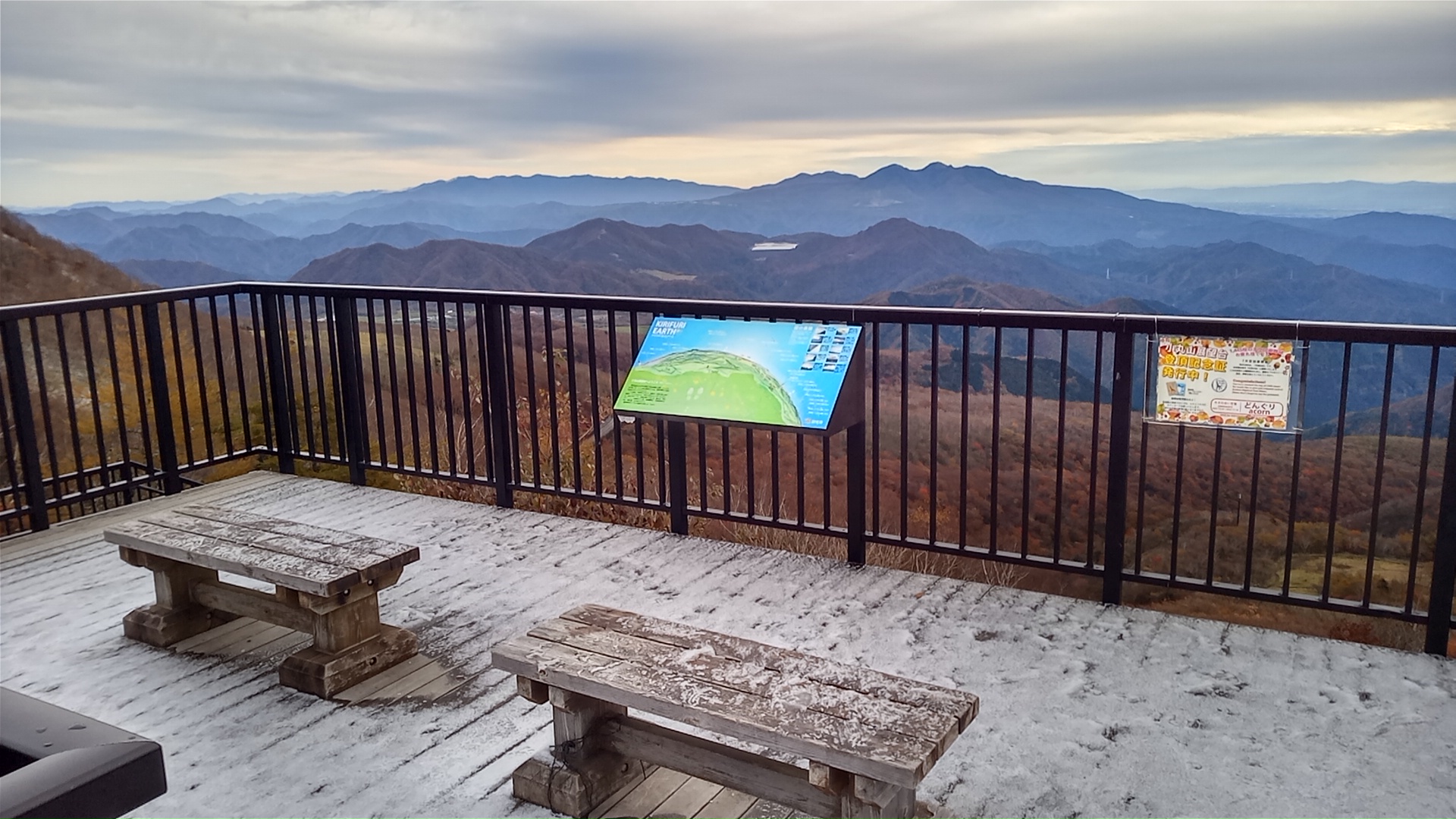 途中の避難小屋で腰を下ろすこともなく、階段でへたりこむこともなく、ゆっくりではあるが休まずに千四百段を登る。後半では板の上に霜が下りている状態で、慎重に足を置く。休憩なしで登れたのは初めてである。