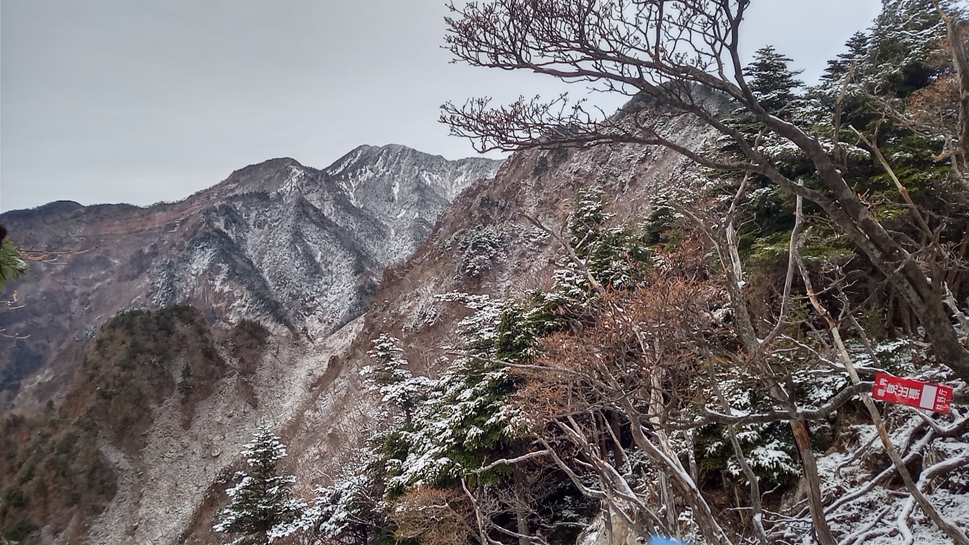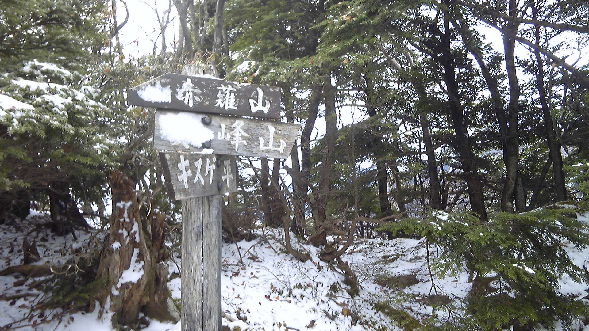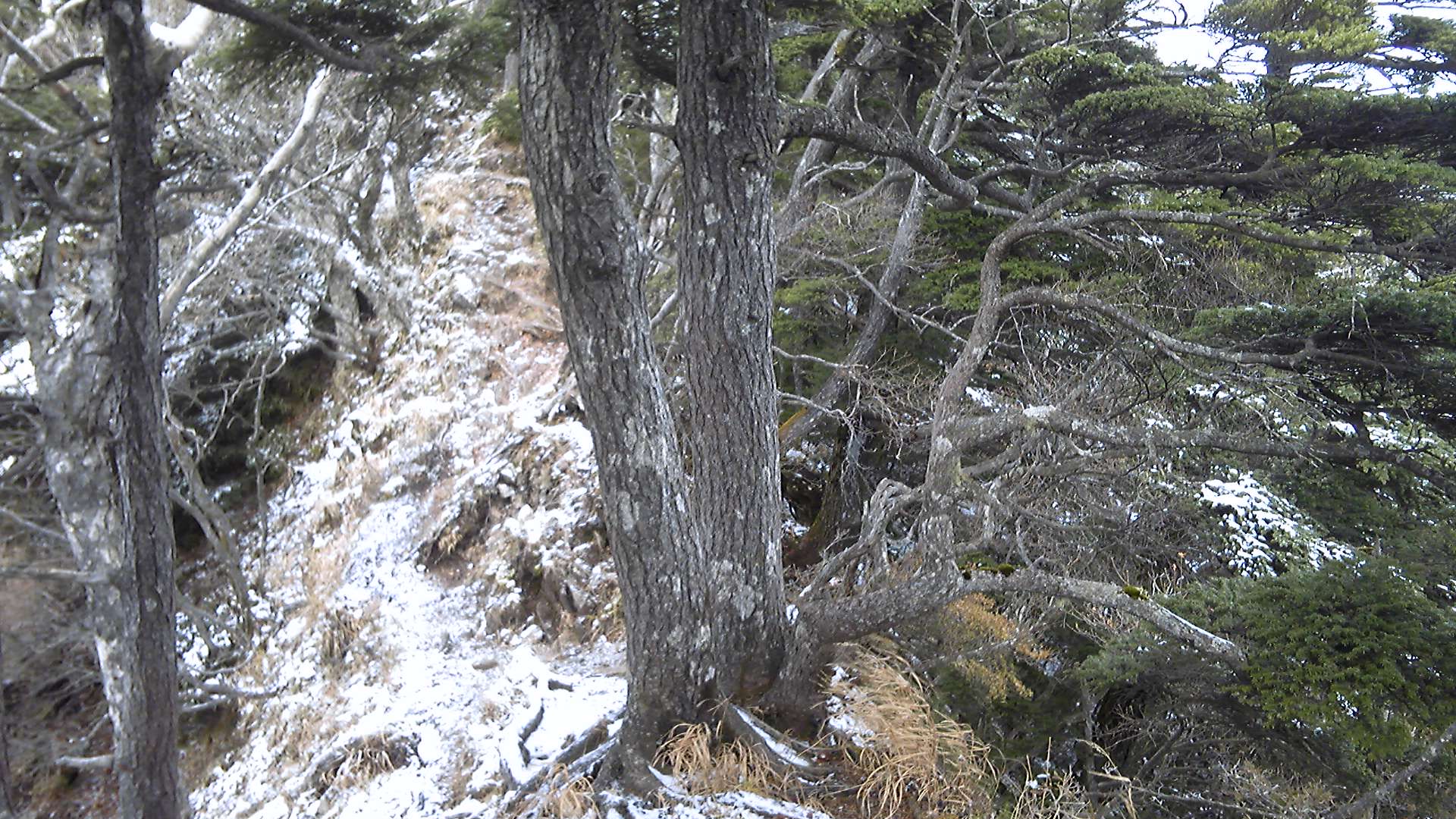 なるべく左足に体重をかけず、しかも滑らないように安定した足場を探すのは難儀である。そして、登山道にも岩の上にも雪が積もって、どこが夏道なのかよく分からない。