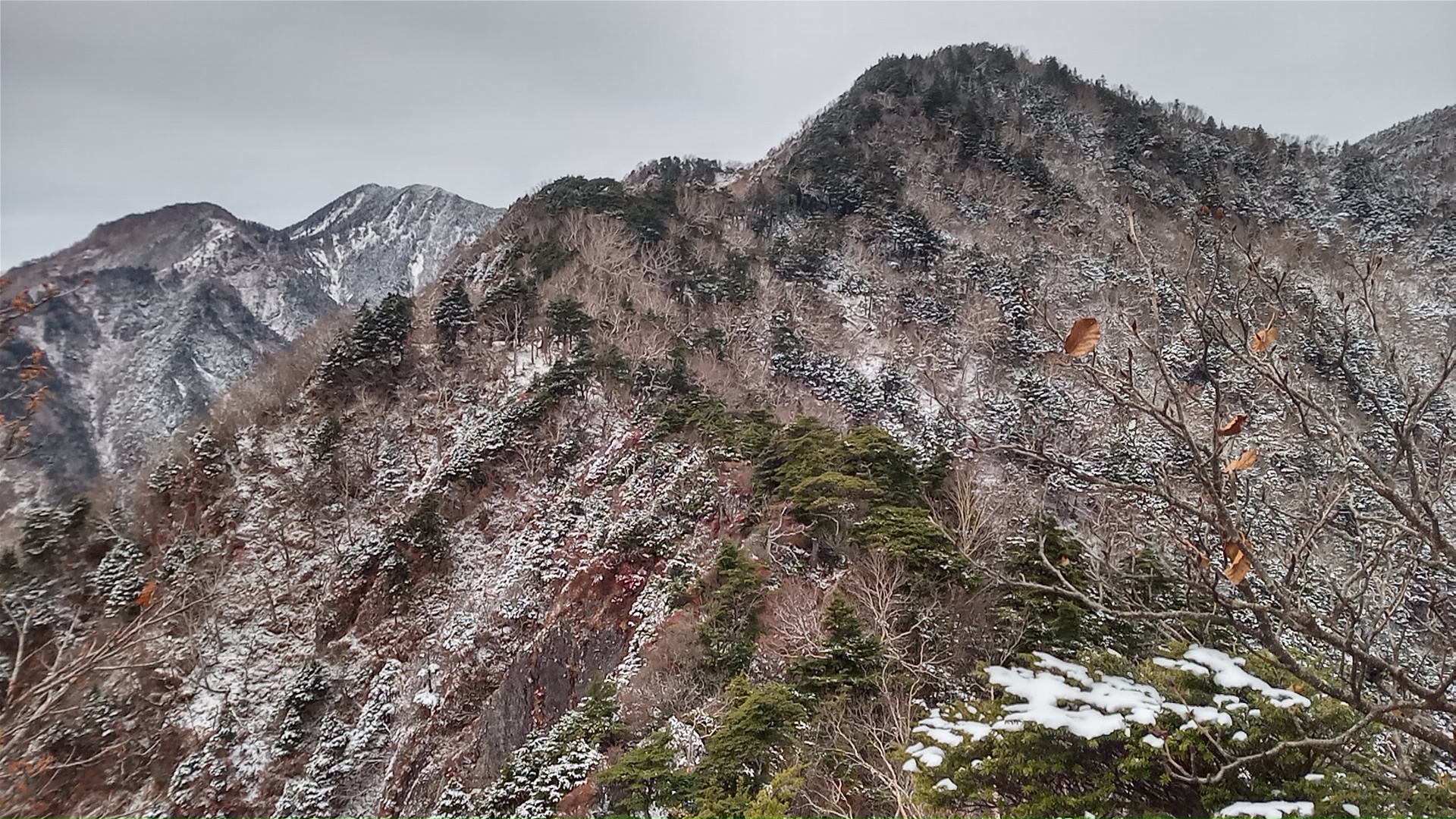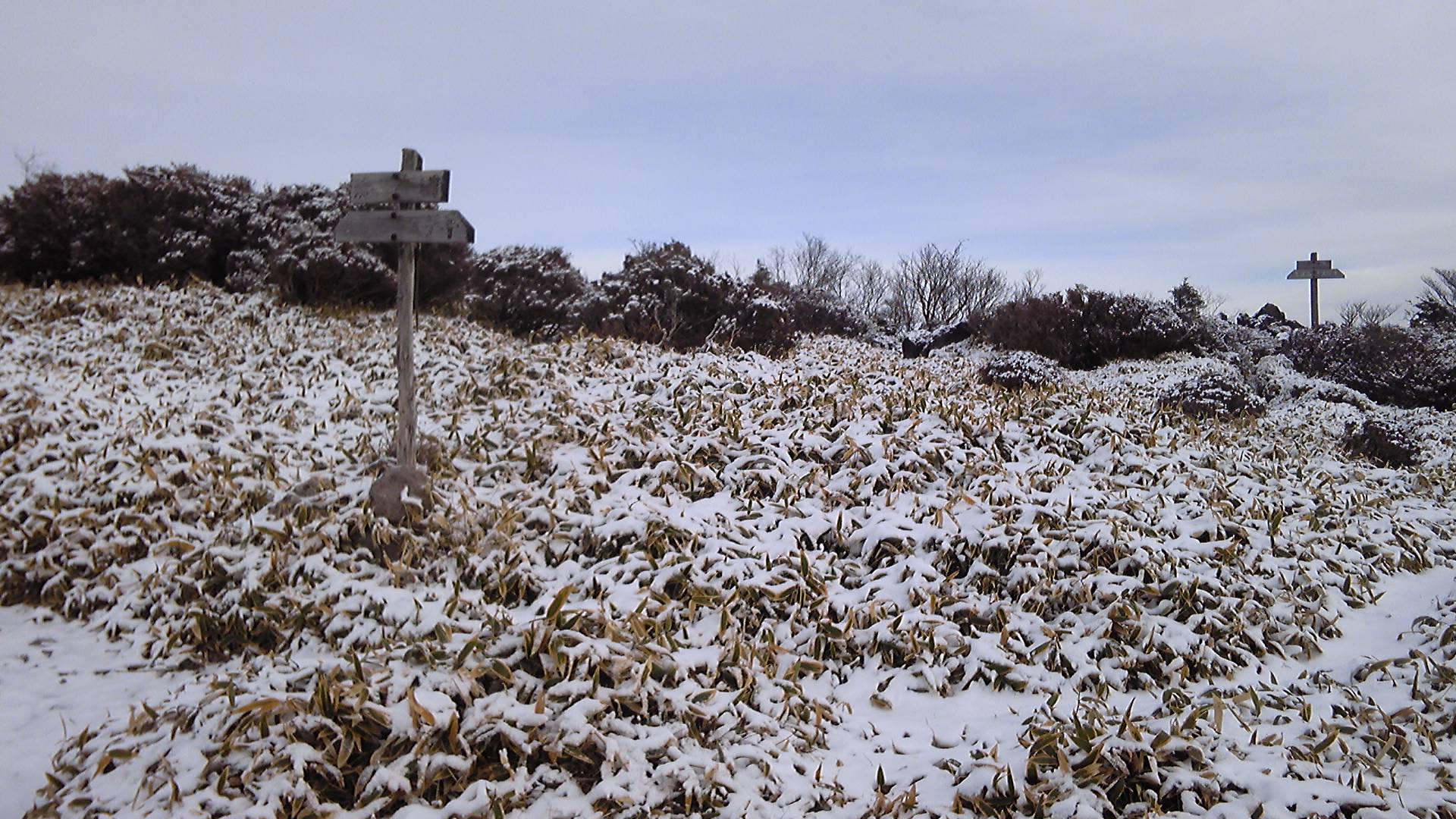 ところが、途中で見えた男体山も女峰山も、頂上には白く雪が積もっている。前日の鶏頂山のように登山道に積もっていなければ大丈夫だが、前日は標高1700m、この日は2000mを超える。登ってみなければ分からない。