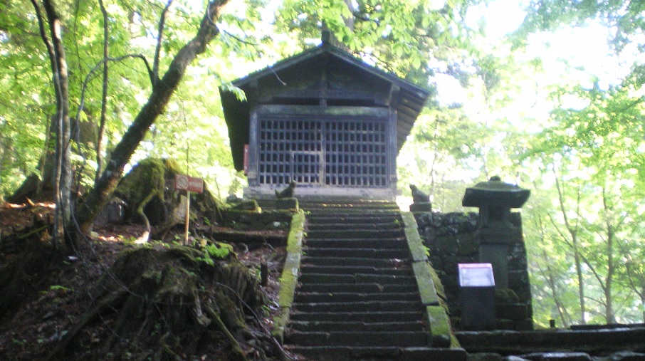 山頂に建つ鶏頂山神社。ここも木曽御嶽本教の施設のようだ。