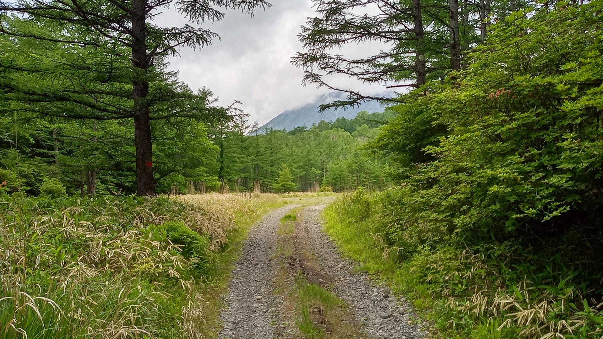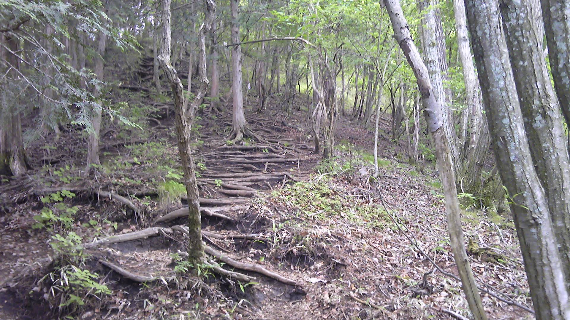 幸いだったのは、朝早く出発して時間に余裕があったことで、まだ10時半だから正午前には頂上まで登れそうだ。問題は空模様で、ずっと林の中だけれど日が差していないことは分かる。もちろん、屋根のある休憩場所などない。