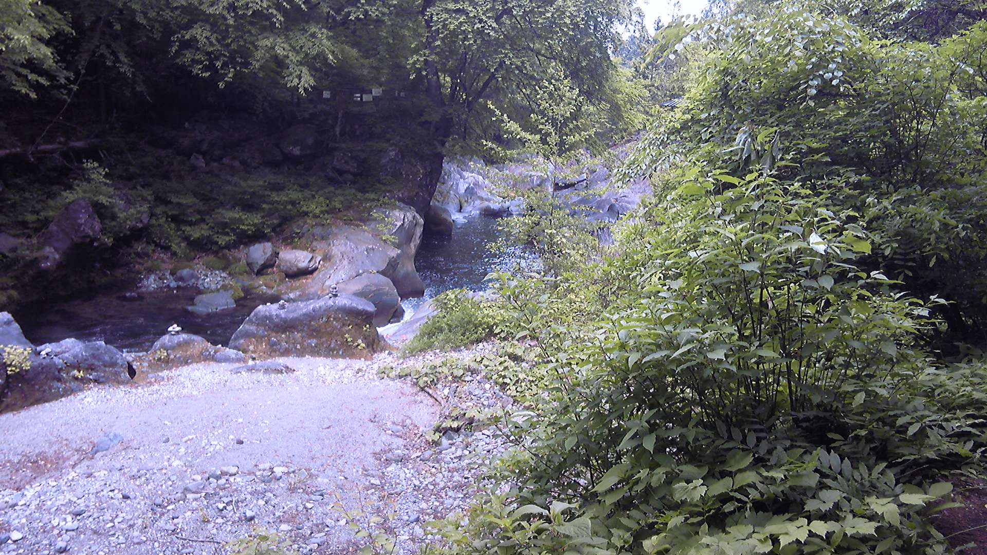 午前7時過ぎに裏見滝駐車場着。私で3台目だった。日は差さないものの、まだ天気は大丈夫。