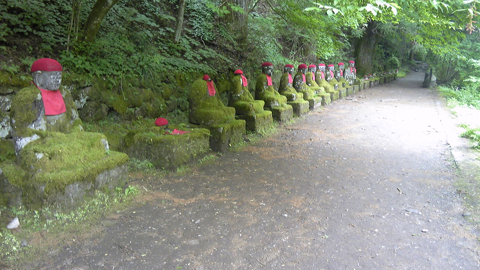 まず裏見の滝へ。朝一番で行ったのは正解だった。滝を裏から見る通路は現在入ることはできない。芭蕉の時は不動明王像(?)あたりまで行くことができた。